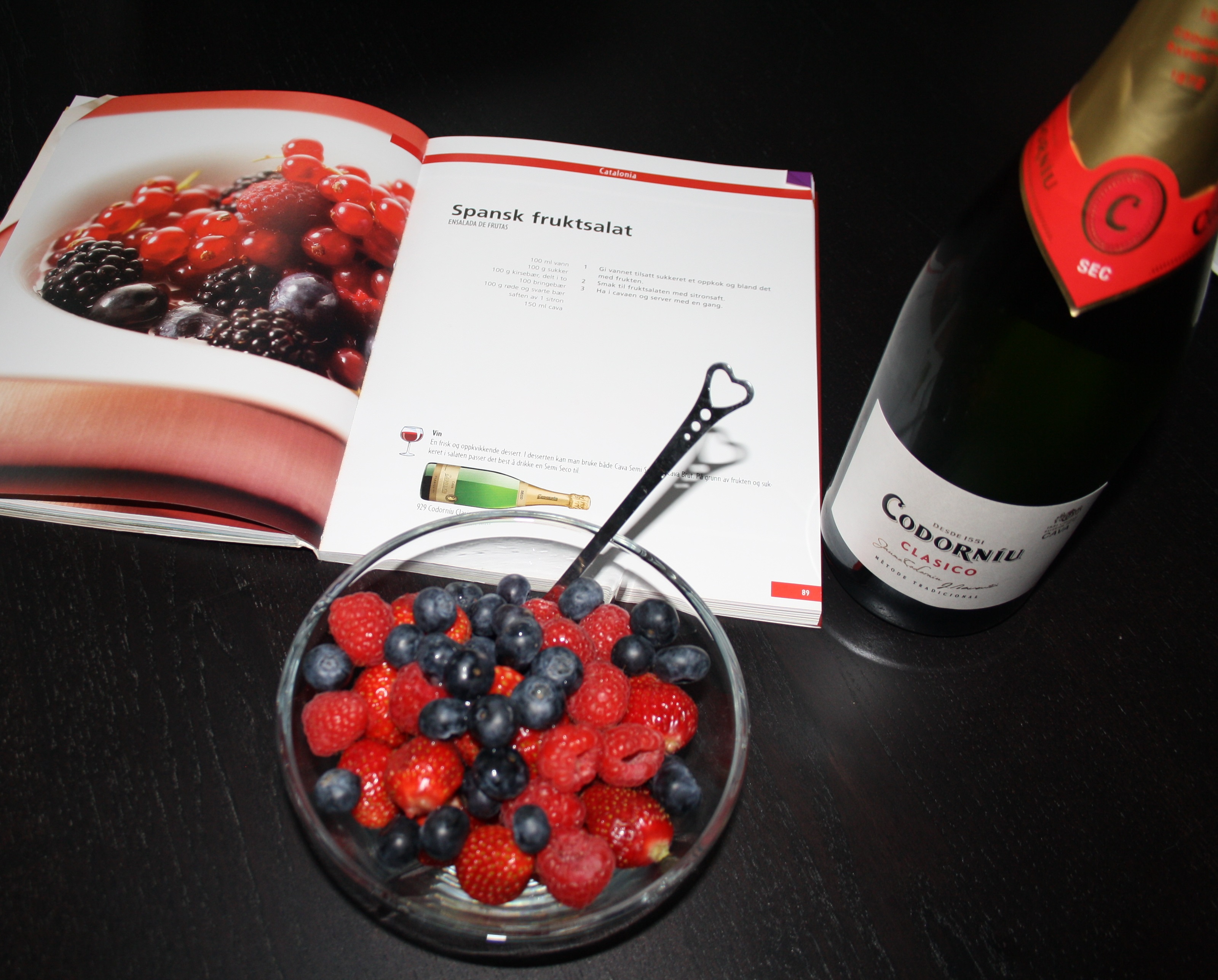 Så var det desserten da, Ensalada de frutas, fruktsalat med cava! Som den cava-elskeren jeg er så visste jeg at dette kunne ikke gå galt!