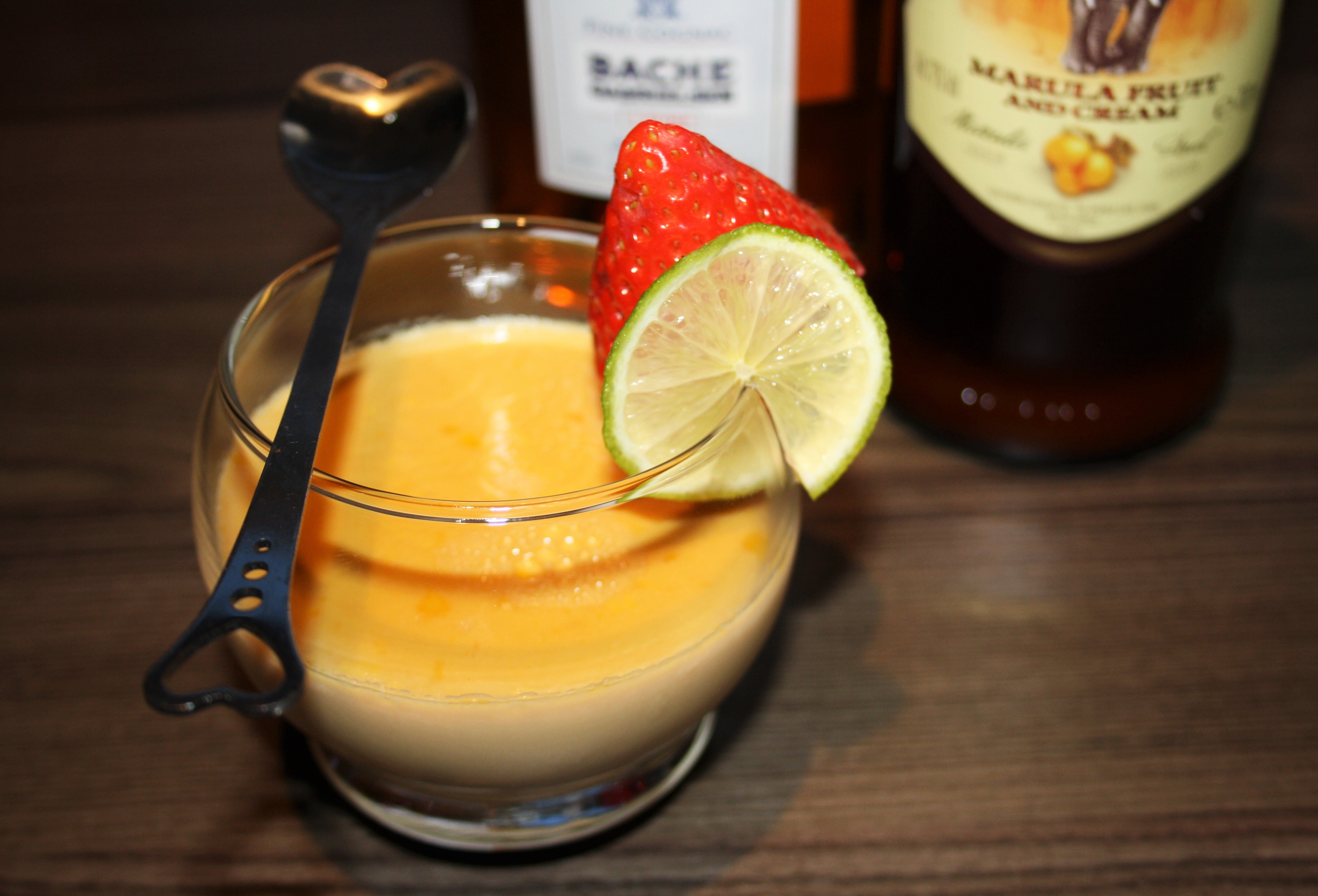 (1 porsjon) Ha en gelatinplate i kaldt vann så varmer du opp to eggeplommer i en kjele sammen med to deler melk, en del cognac og en del amarula pluss en ss sukrin gold. (Ca. 4 cl per del) Pass på at det kun varmes opp og ikke koker, da blir det ødelagt. Så har du i gelatinplaten og har det hele i et glass når gelatinen er oppløst. La stå i kjøleskapet et par timer før servering.