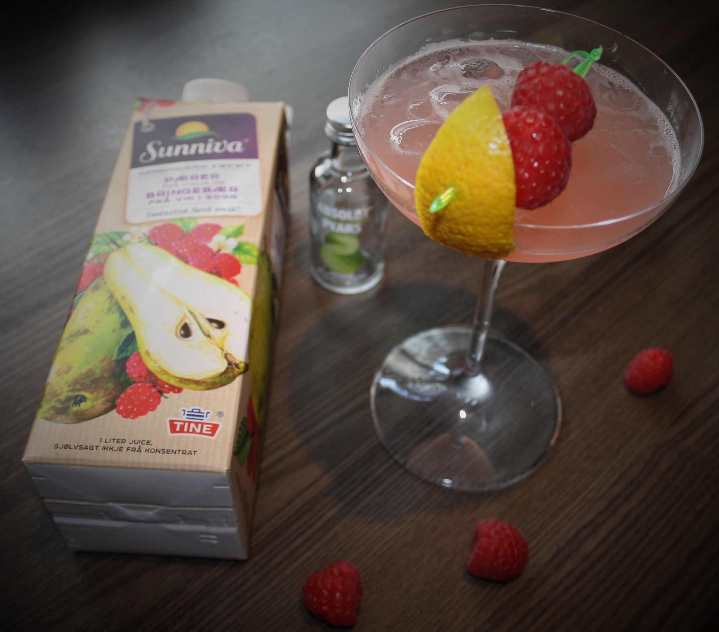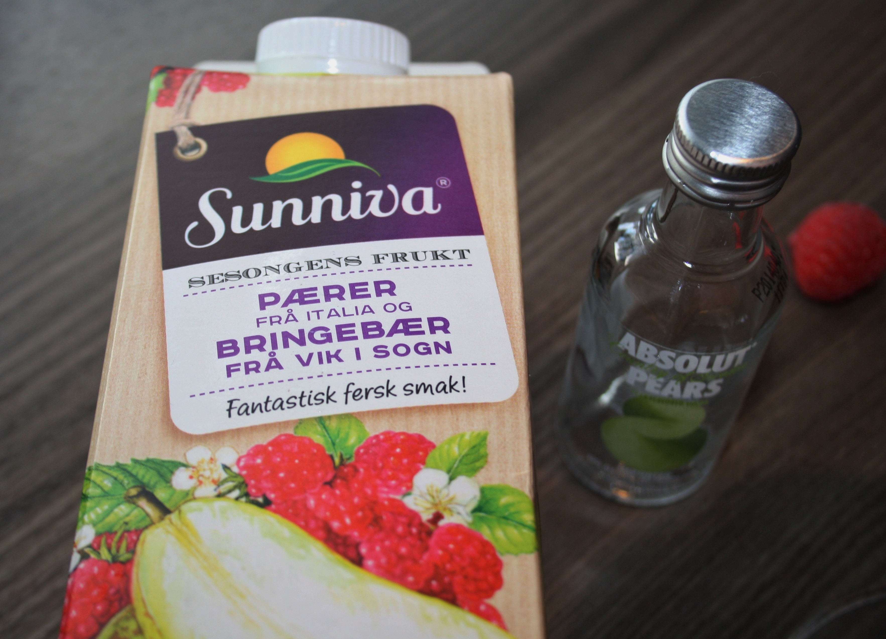 Juicen er lagd av Italienske pærer og norske bringebær, jeg tenkte derfor på to absolut vodka varianter, absolut pears og absolut rasberry .