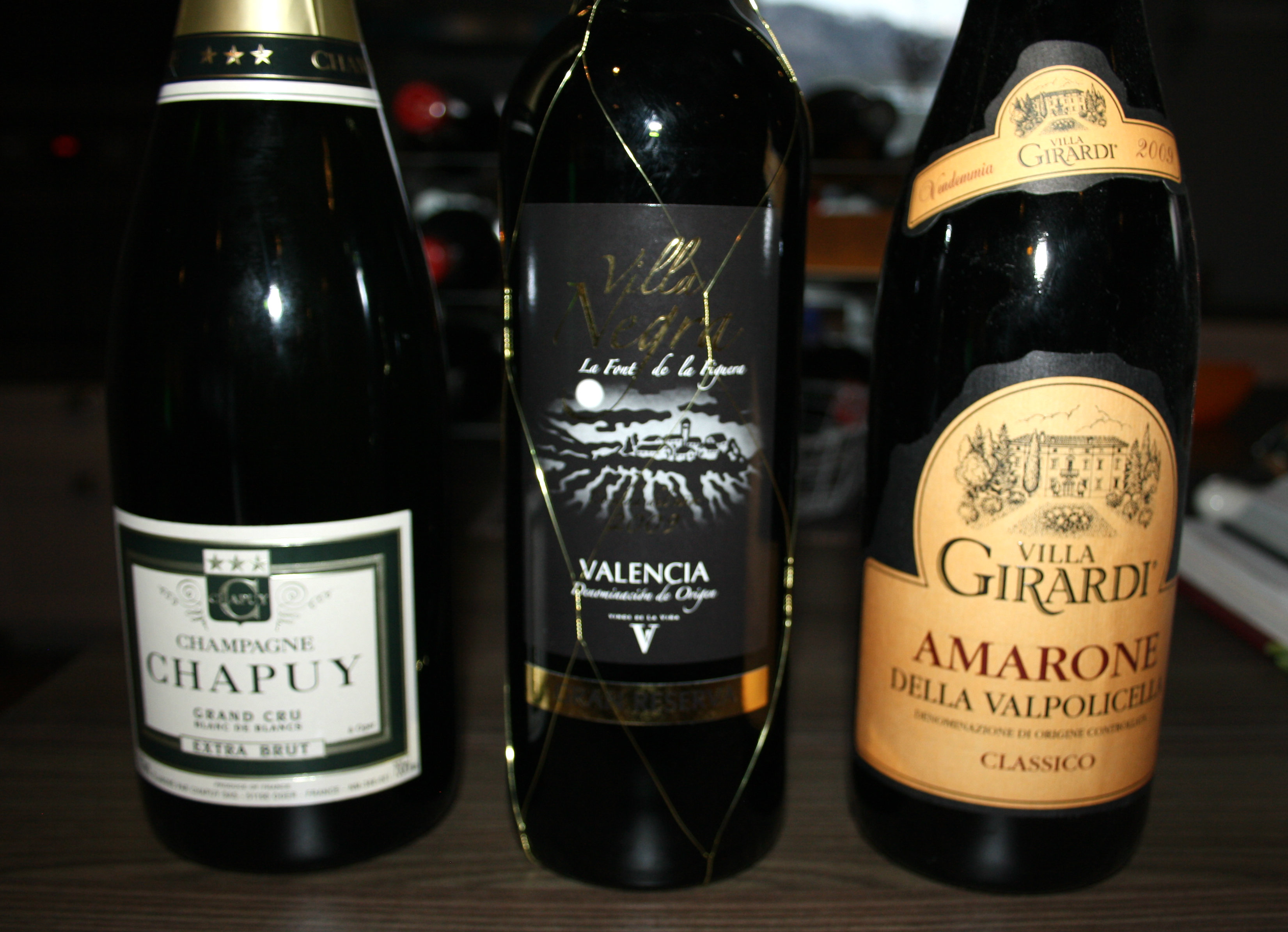 Tenkte jeg skulle oppdatere denne posten med litt smaksnotater og bilder. På vinfronten serverte jeg Villa Girardi Amarone 2009, Villa Negra Gran Reserva 2009 og Chapuy Grand Cru Blanc de Blancs Extra Brut, at to av vinene var 2009-modeller var ingen tilfeldighet for de som lurer.