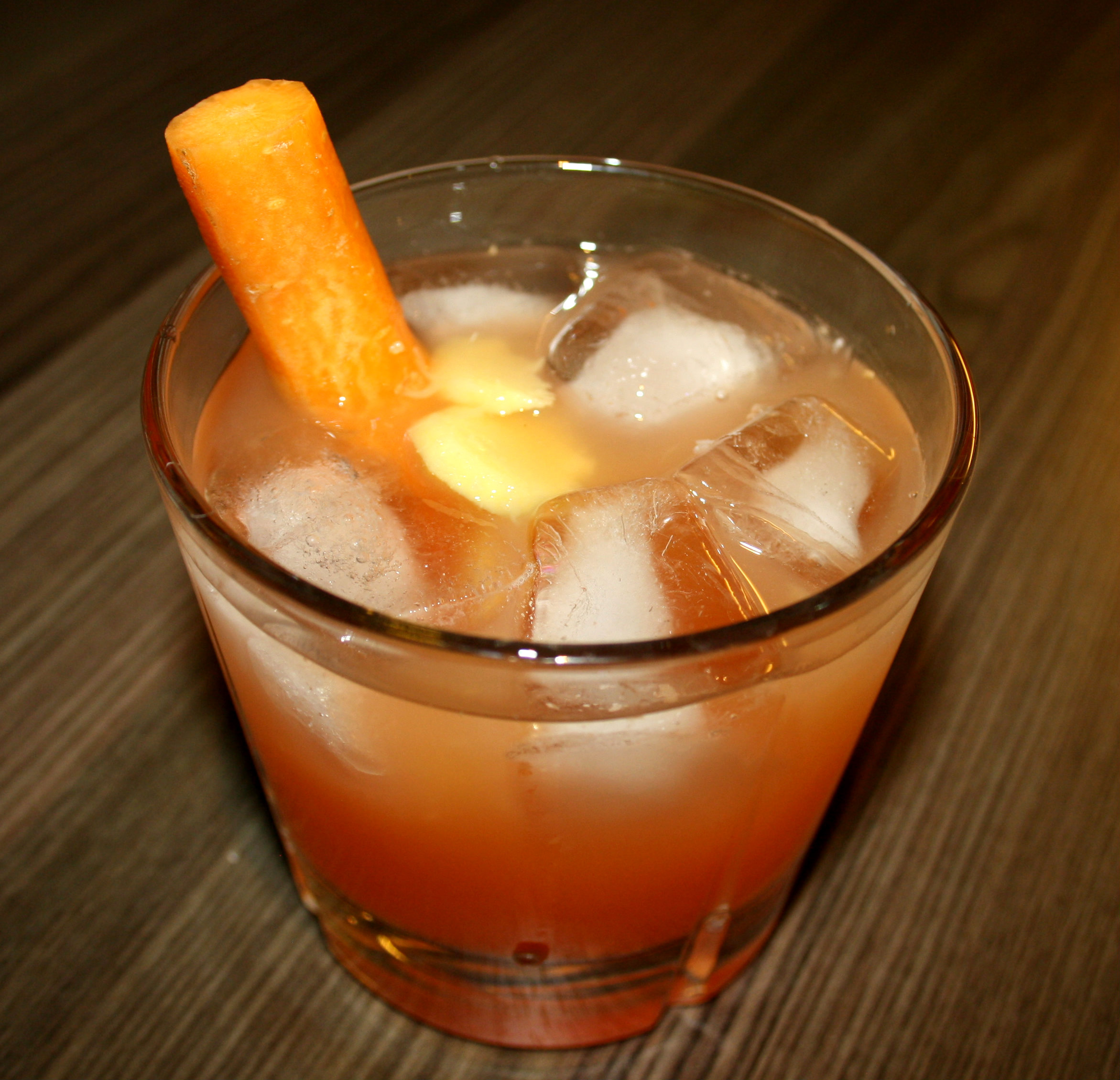 Dette er ingen aprilsnarr, ukens cocktail er av det sunnere slaget… Selv om de lærdes kanskje strides om gin og campari er så sunt og kanskje vil ta det som en spøk. Den inneholder hvertfall ingefær og gulrot, det er vel sunt?!