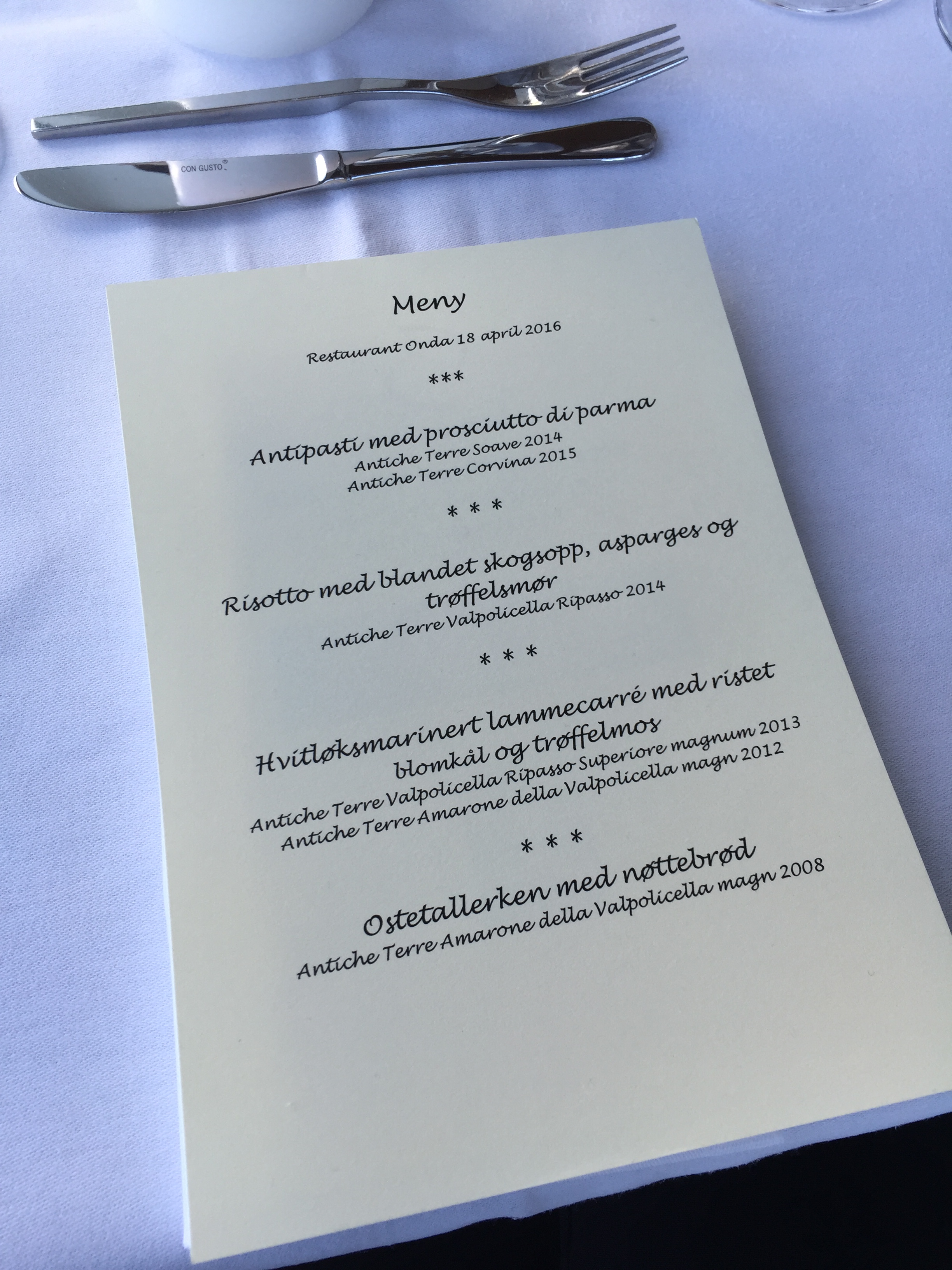 Sist uke var jeg på et utrolig flott arrangement på Onda på Aker Brygge, solen skinte, maten var god, vinen var eksepsjonell og folkene hyggelige. Christer Berens hadde arrangert en såkalt Winemakers Dinner som er så populært nå og det var selvfølgelig Antiche Terre som hadde tatt turen fra Italia!