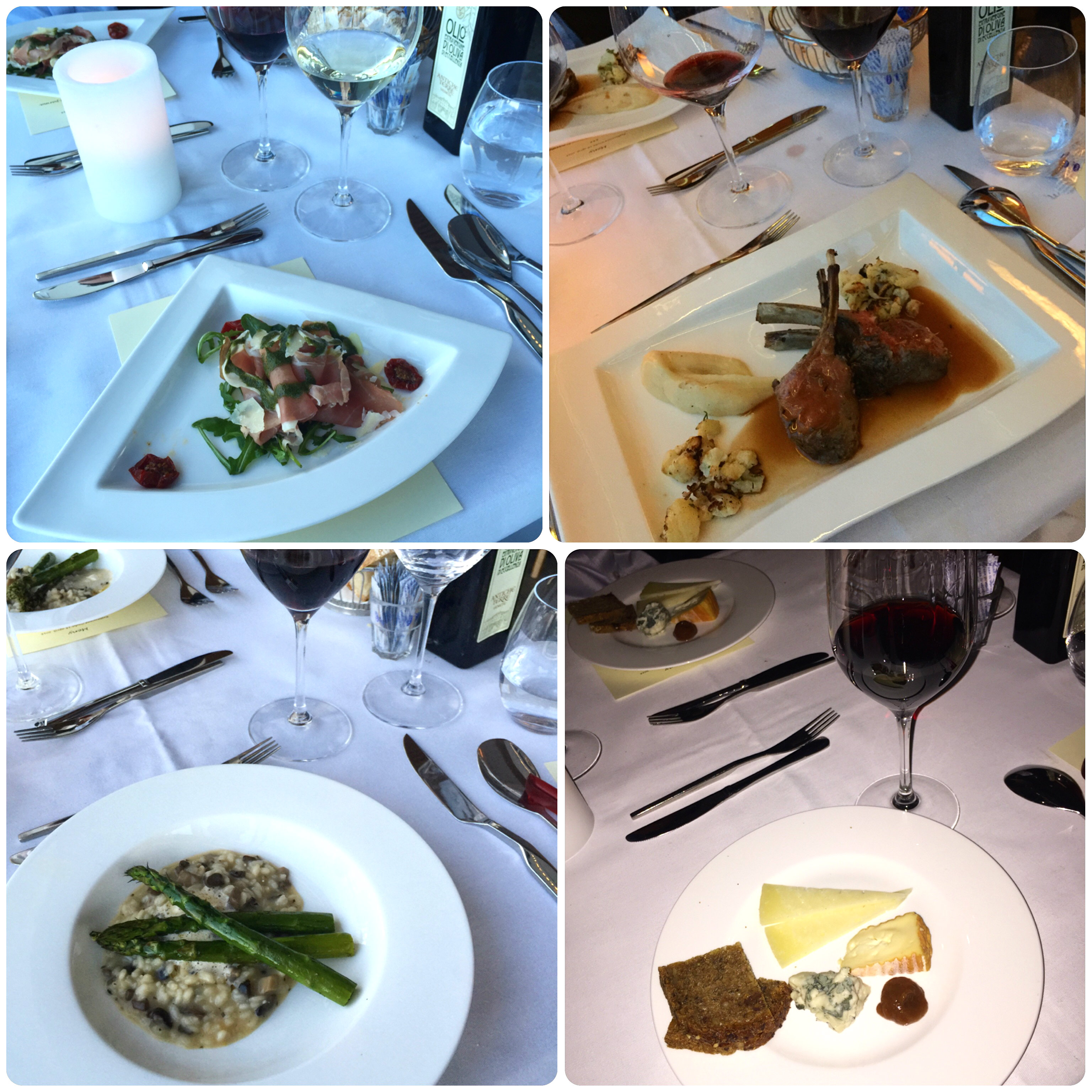 Jeg kan bare si at all maten smakte helt fantastisk og at vinene var utmerket til, skinken var silkemyk, risottoen kremet, lammet mørt og ostene nydelige, en perfekt 4-retters! Servitørene gjør dog en feil, de serverer Amarone 2008 til både hovedretten og desserten. For meg er ikke det noe minus, den er jo helt nydelig! Det kommer også overraskende sjokolade på tampen av kvelden, vi som trodde kvelden ikke kunne bli bedre!