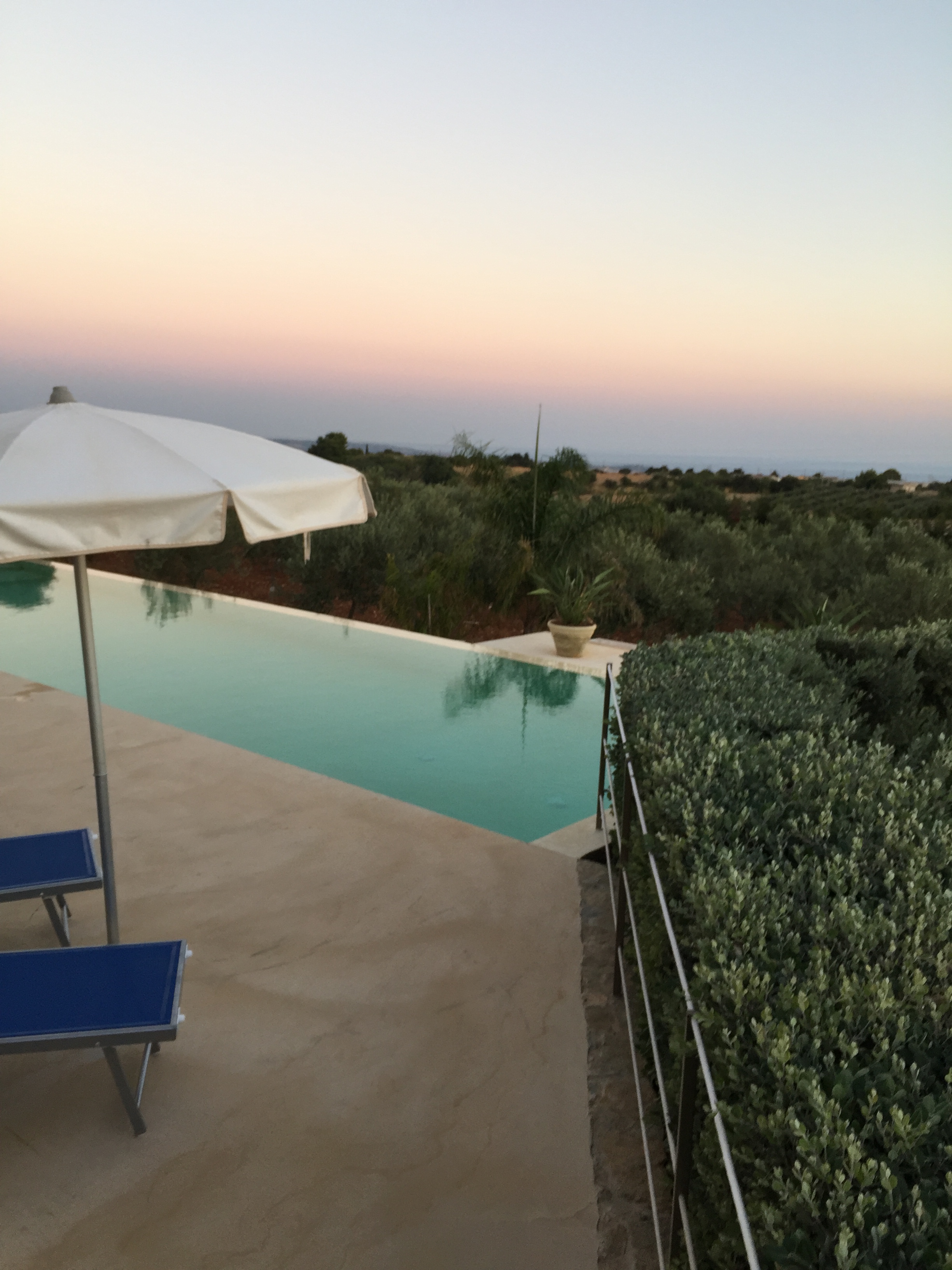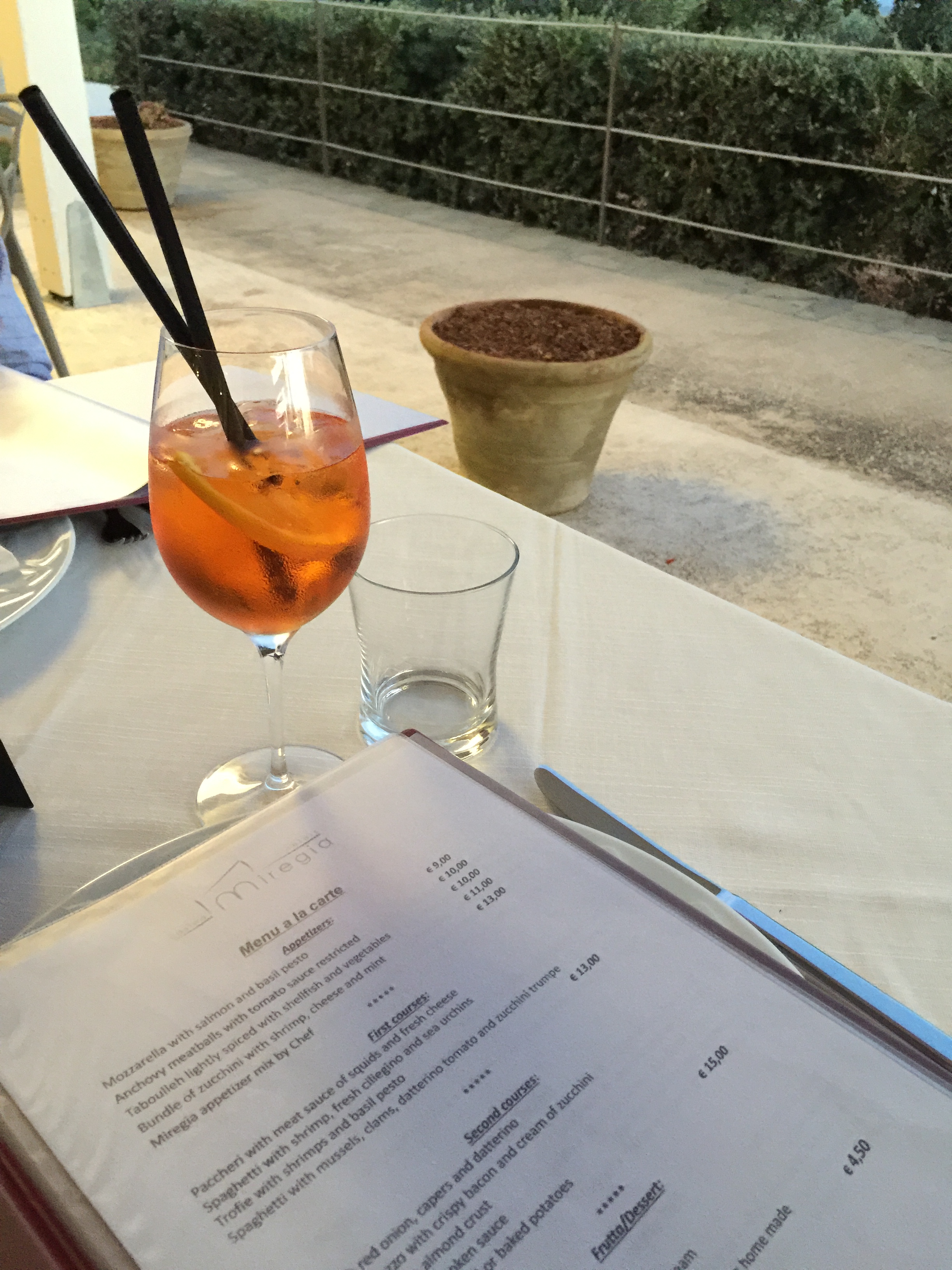 Casina Miregia Relais var et kjempefint hotell ute på landet midt blant vin- og olivenmarker, det hadde basseng, frittstående hus med hotellrom og en egen frukt- grønnsaks- og urtehage som luktet aldeles nydelig! Maten var også helt fantastisk, vi startet med Spritz og avsluttet med Limoncello, mette på god mat og vin før vi la oss og sovnet til lydene av gresshopper i det fjerne.