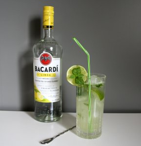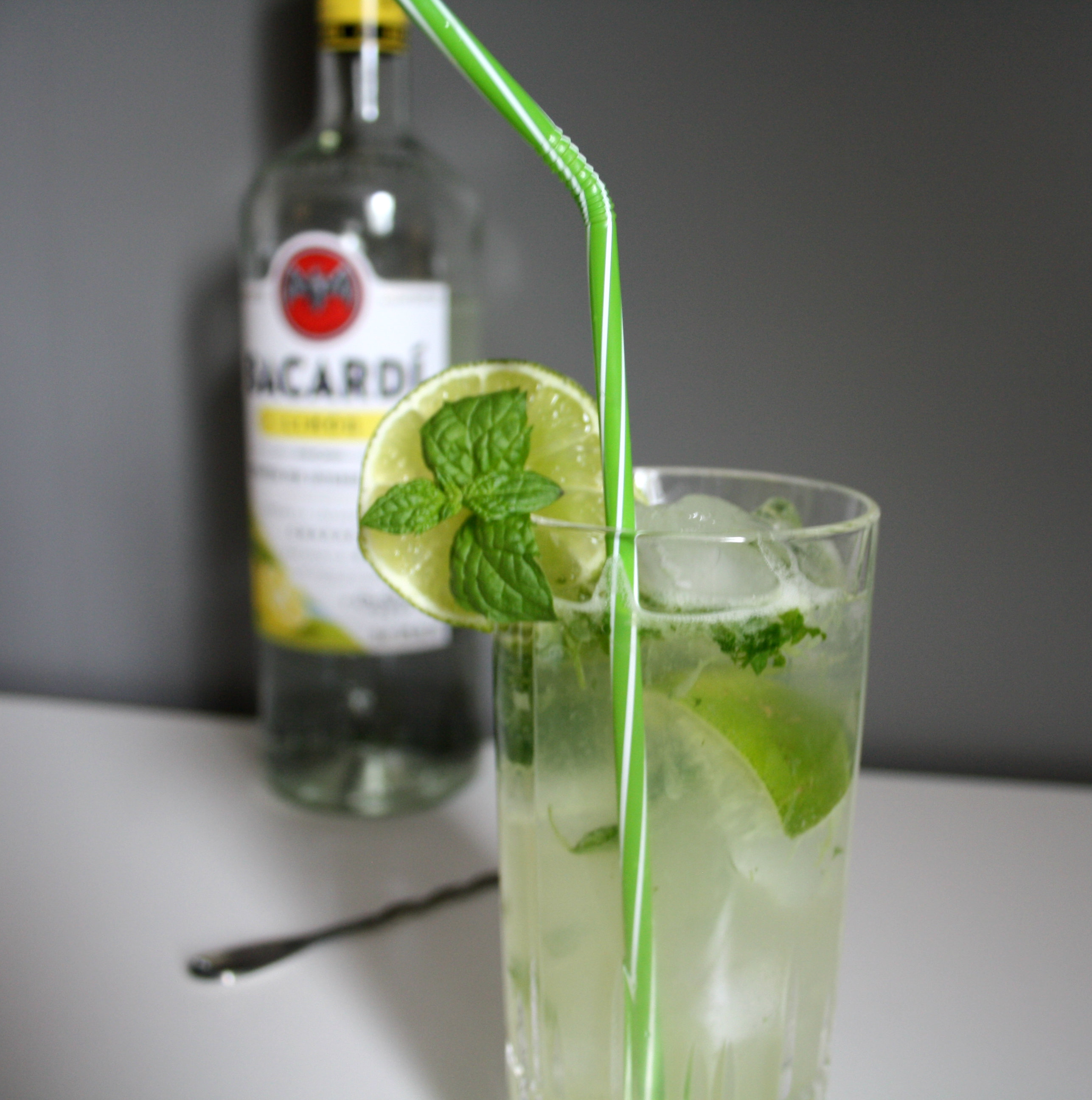 Mos mintblader og sukker til en grøt og bland med limejuice, hell over is i et høyt glass og topp med rom og evt sodavann.