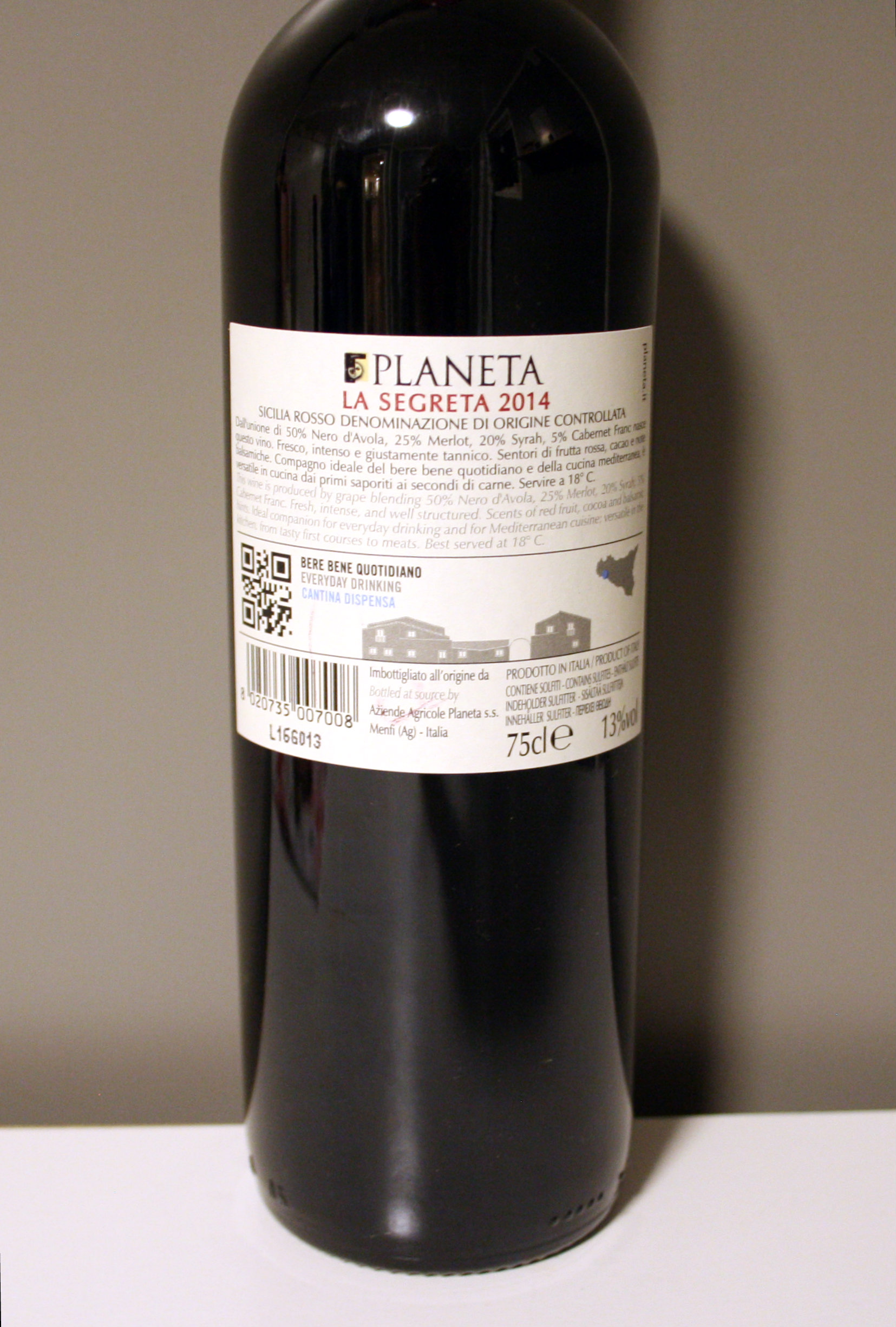 La Segreta Rosso 2015 (Smakt i 2014 årgang) kjøpte jeg etter Siciliaturen i fjor sommer, jeg rakk ikke å besøke Planeta men de står øverst på listen neste gang jeg skal besøke øya! (Jeg besøkte for øvrig Donnafugata, Murgo og Feudo Arancio)
