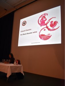 En liten samling mennesker samler seg spente i foredragsrommet når klokken slår 12.00 og får presentert 7 ulike viner hver, før vi skal smake får vi dog en fin presentasjon av Chiantiområdet.