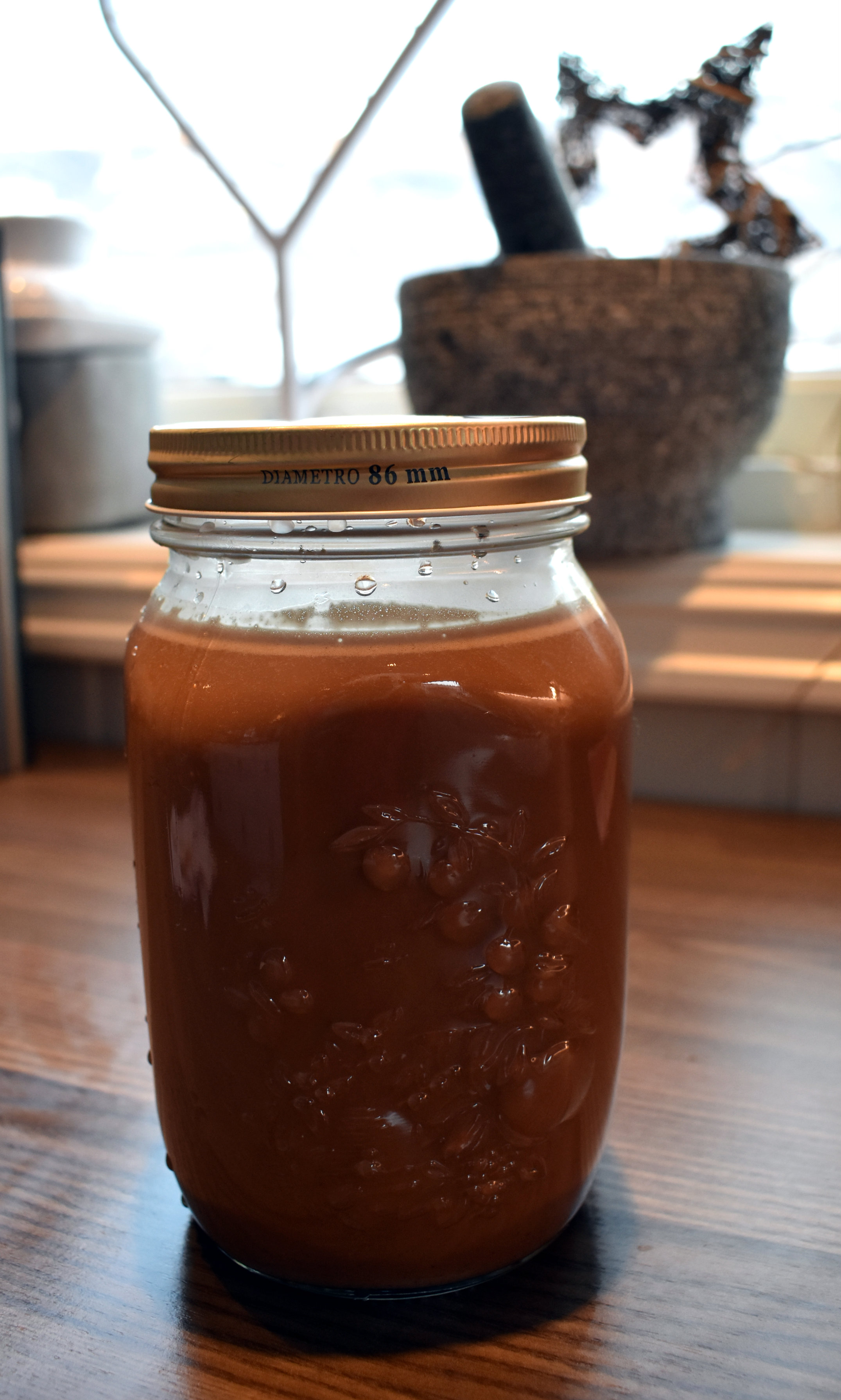 Ha det over i en fin flaske, eller et moonshineglass om du brukte opp alle flaskene dine til eggelikør. La stå kaldt et par timer og vips, så har du hjemmelagd deilig sjokoladelikør.