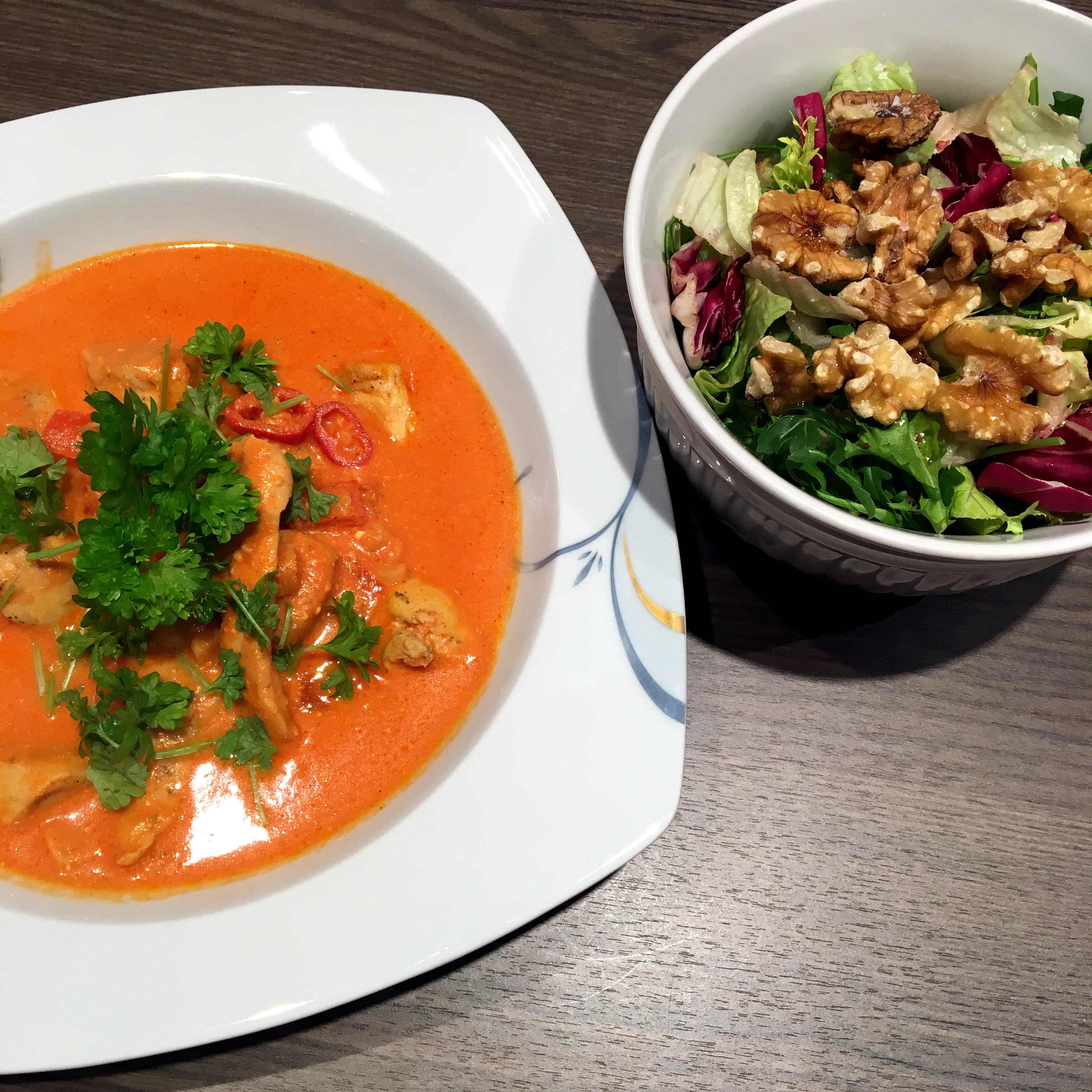 Men, jeg ble utrolig overrasket da den passet til kyllinggryten vi skulle spise! Den var basert på tomater, fløte og blåmuggost, et vinmessig mareritt å matche.
