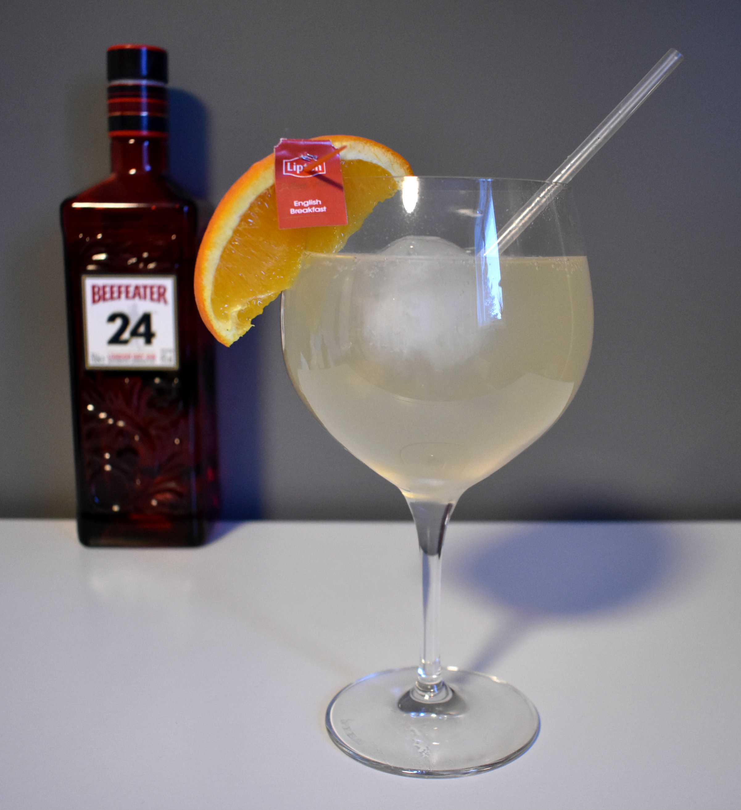 Her lages en vanlig G&T med Earl grey sirup. Kok opp sirup og la en eller to teposer trekke i det i minst 10 minutter. Hvis du bruker 5 deler gin, bruker du 1 del sirup. Husk litt sitronsaft!