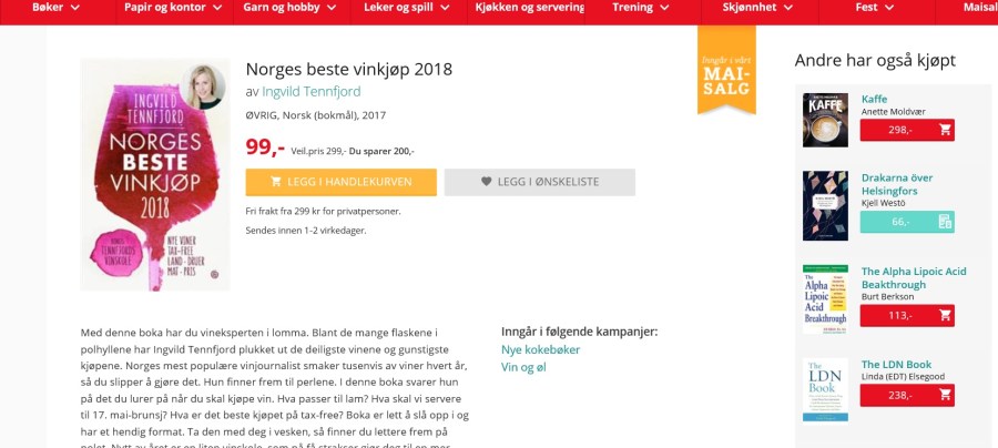 Ellers så har Adlibris over 10.000 bøker om vin, 86 er i skrivende stund på norsk. Alltid til en god pris! Har du noen gode tips til bøker jeg bør kjøpe?