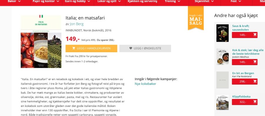 Italia; en matsafari er en fantastisk bok, den har jeg hjemme og blar i ofte. Hvem elsker ikke italiensk liksom?