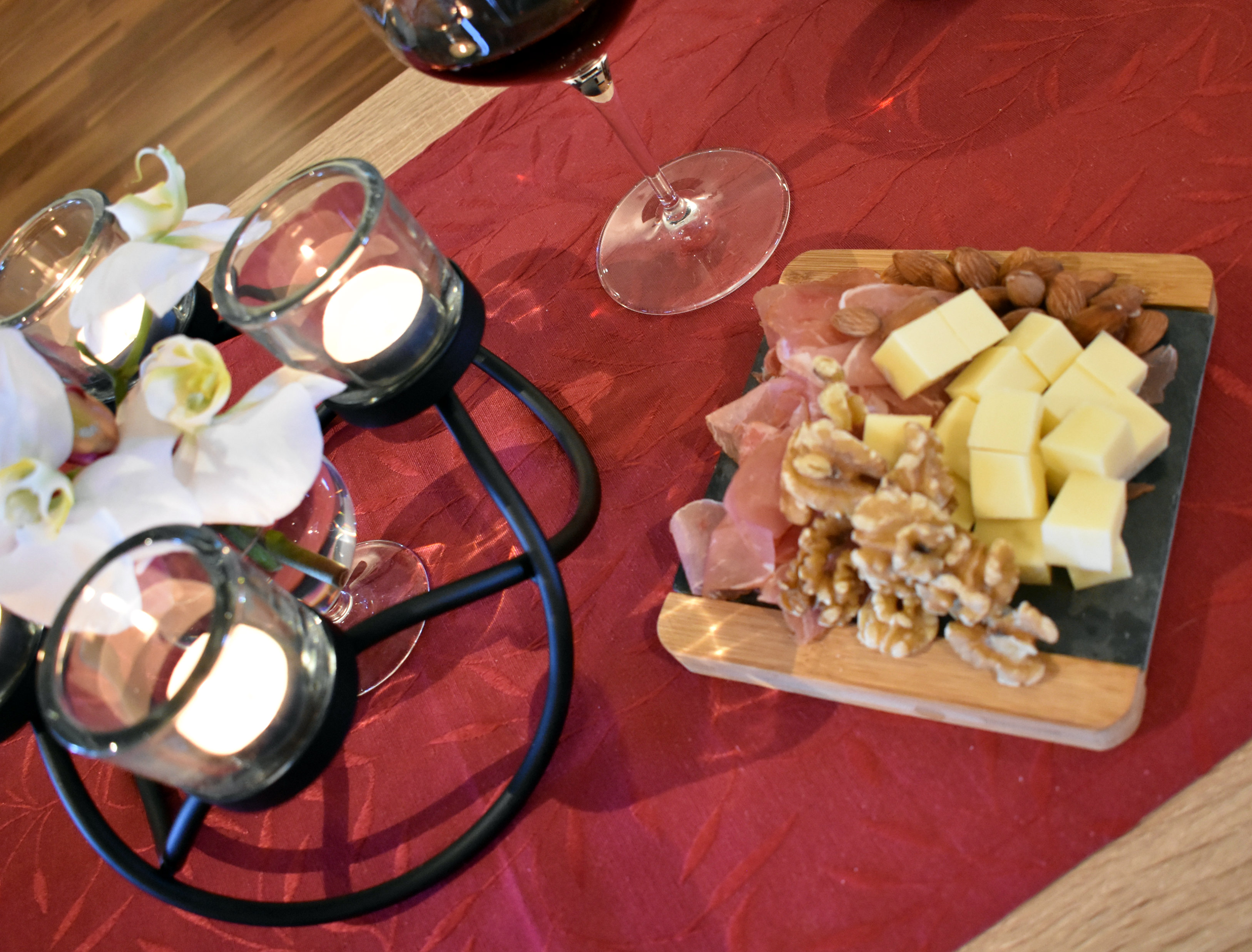 Spekeskinke, vellagret ost og nøtter. Masse proteiner, sunt fett og vitaminer og mineraler. Og hvis du spiser brød osv. er det selvfølgelig lov å servere det til, man er herre i sitt eget hus. Stort sett.