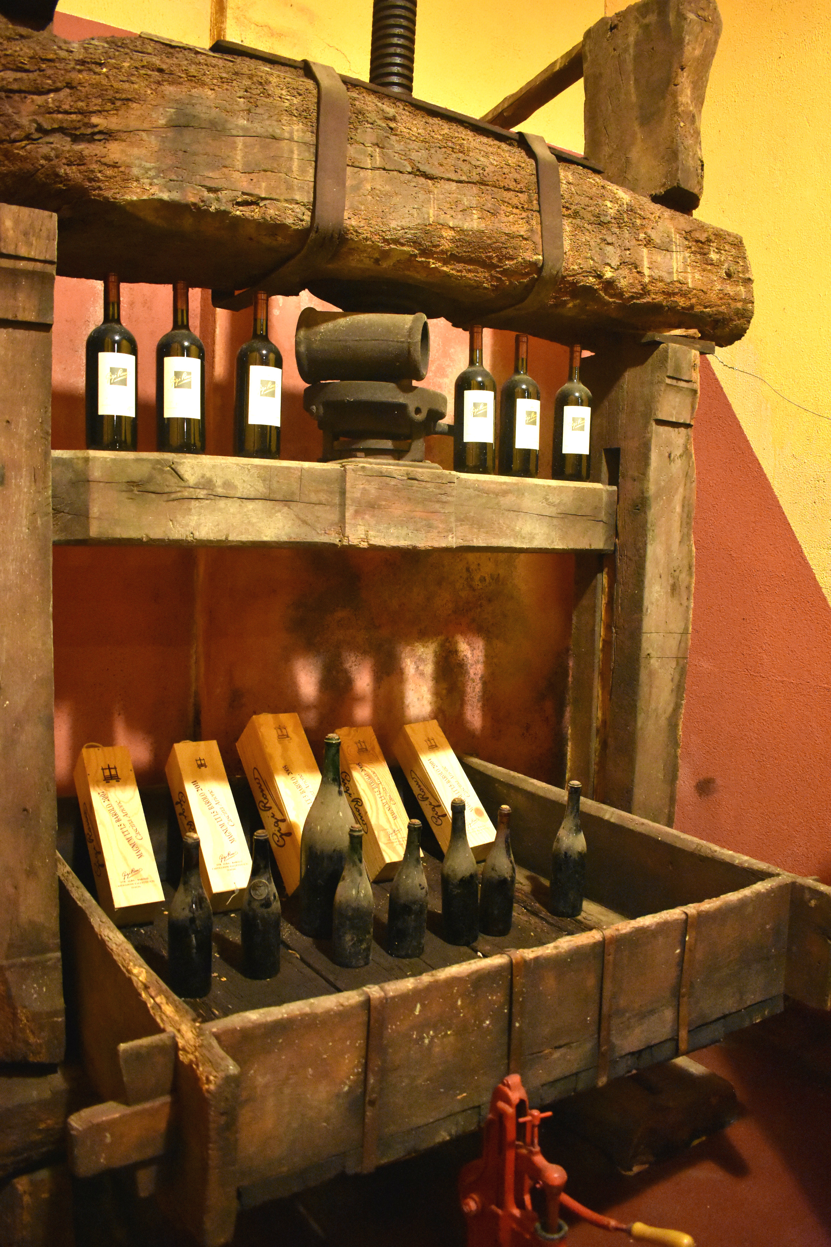 Det er morsomt å se de gamle gjenstandene blandet med nye, her står ståltanker meter fra eldgamle vinpresser.
