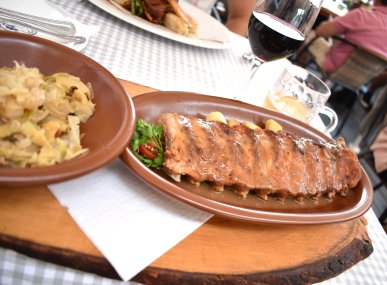 Jeg tar spareribs med dumplings og sweet and sour kål med bacon til hovedrett, en utrolig smakfull og god rett. Man skal ikke være redd for å gå hjem sulten fra denne restauranten!