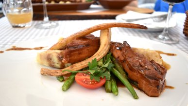 Restauranten er også veldig barnevennlig, sønnen vår får utdelt farger og noe å tegne på omtrent før han har satt seg, så mor og far kan studere menyen i fred! De har ikke egen barnemeny, men sier at de gjerne lager ting på etterspørsel, som for eksempel fritert fisk eller kylling med potet. Det falt i smak hos vår litt småkresne gutt.