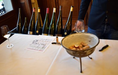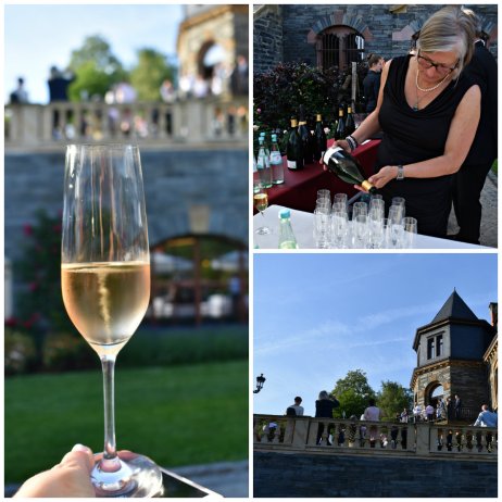 Et eventyrslott med vinmarkene i bakgrunnen, så tysk man får det! Vi ble møtt med glass på glass med bobler, dette var nemlig en «Big Bottle» fest hvor alle vinhusene i området hadde donert magnumflasker og større til festen.