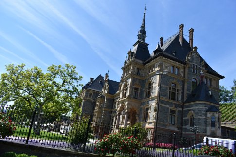 Slottet ble lagd i 1884-1887, designet i Neo-Renaissance stil, for Eduard Puricelli, som var en industrialist og politiker i tillegg til å eie vinhuset, noe som forklarer økonomien til å bygge denne flotte bygningen. Datteren Maria tok i 1895 over slottet sammen med mannen Dr Clemens Freiherr von Schorlemer, og sammen utvidet de slottet med en Art Nouveau-del.
