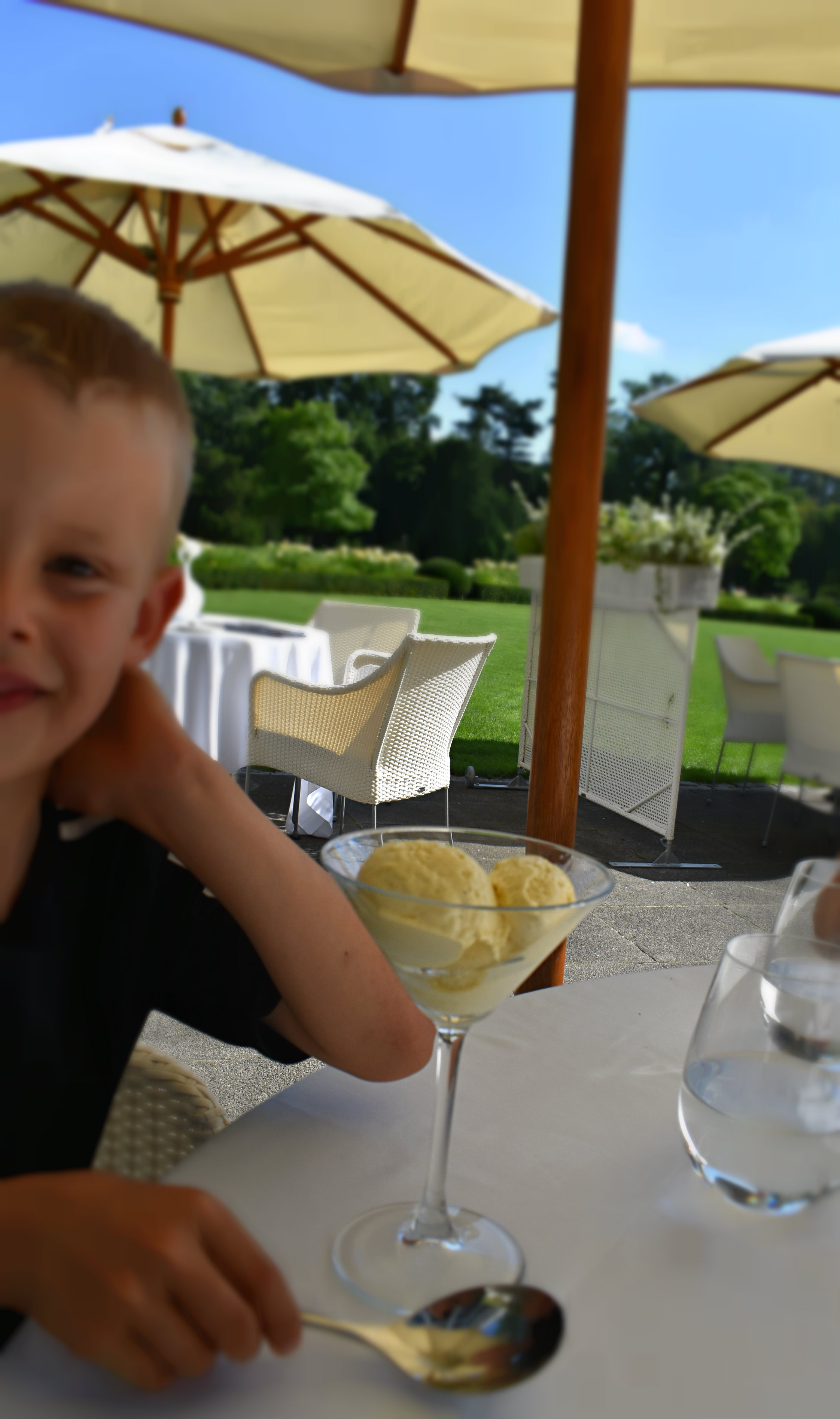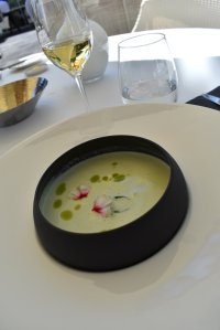 Det er ikke alltid de har barnemeny forteller kelneren, som er litt dårligere i engelsk enn jeg syns han bør være til å jobbe på en slik restaurant. Men vi får hjelp, og mat. 7-åringen vår får anbefalt en relativt barnevennlig anderett mens vi voksne begynner med en deilig kald suppe.