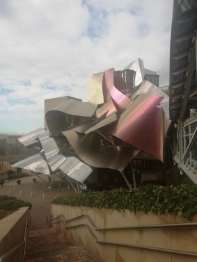 Elciego er kjent for det spesielle hotellet (bilde under) designet av Frank Gehry, dette er en del av vinhuset Bodegas Marqués de Riscal man selvfølgelig kan besøke!
