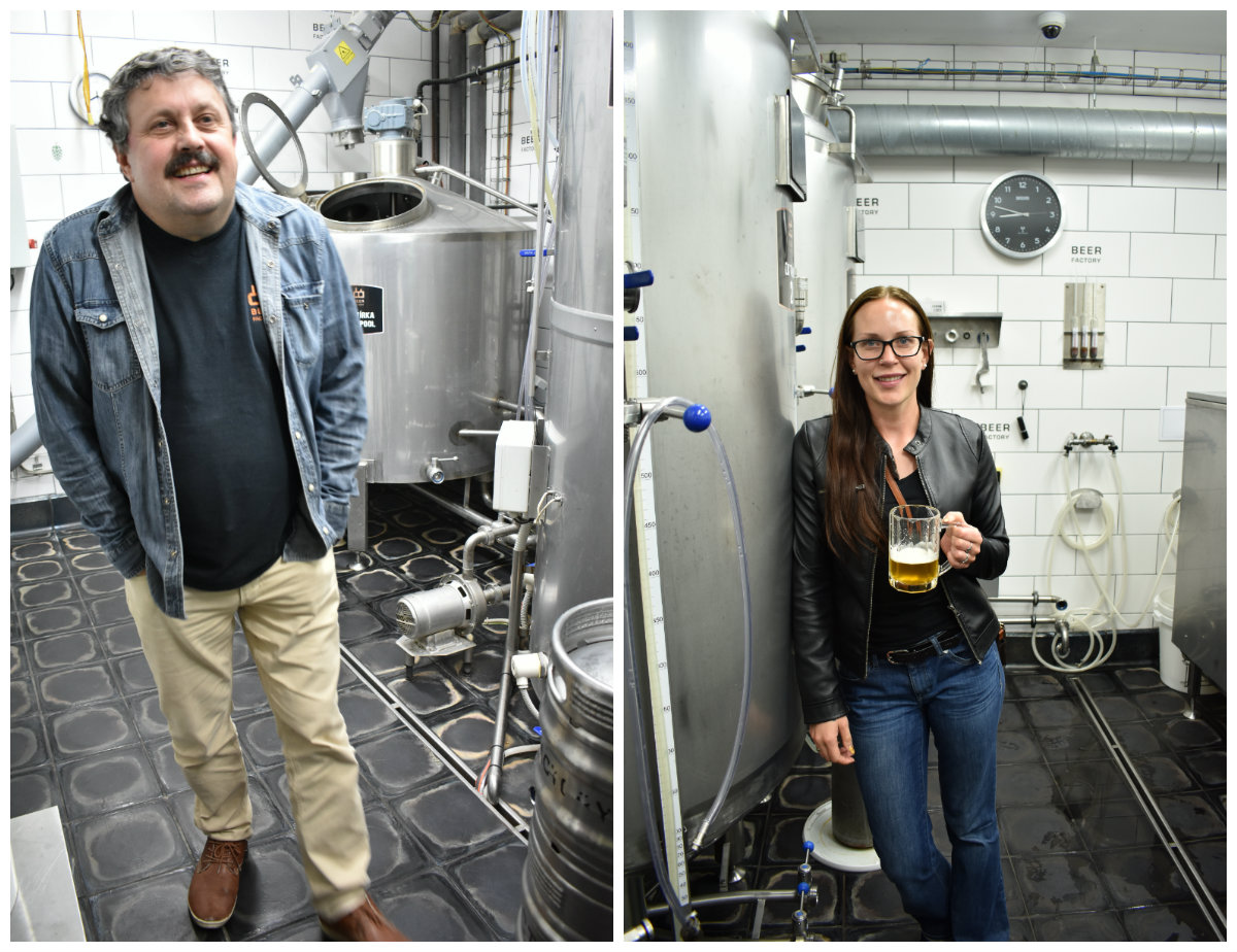 Hvis du spør pent får du kanskje være med ned i kjelleren også, hvor magien skjer! Her er bryggeren hos Beer Factory, med solid bakgrunn hos Pilsner Urquell såklart. Jeg med en blodfersk pils i hånden, rett fra tanken!
