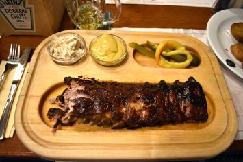 Menyen var rik og tradisjonell, masse deilige kjøttretter å velge mellom. For en ekte kjøtteter som undertegnende passet det utmerket. Til maten drakk vi selvfølgelig Pilsner Urquell! «Desserten» ble dog litt utradisjonell: