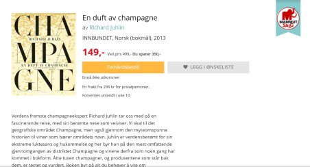 Dessverre ikke så mange vinbøker denne gang, men hvis det er en jeg vil anbefale er det En duft av Champagne av Richard Juhlin, denne kjøpte jeg for mange år siden og bruker fortsatt!