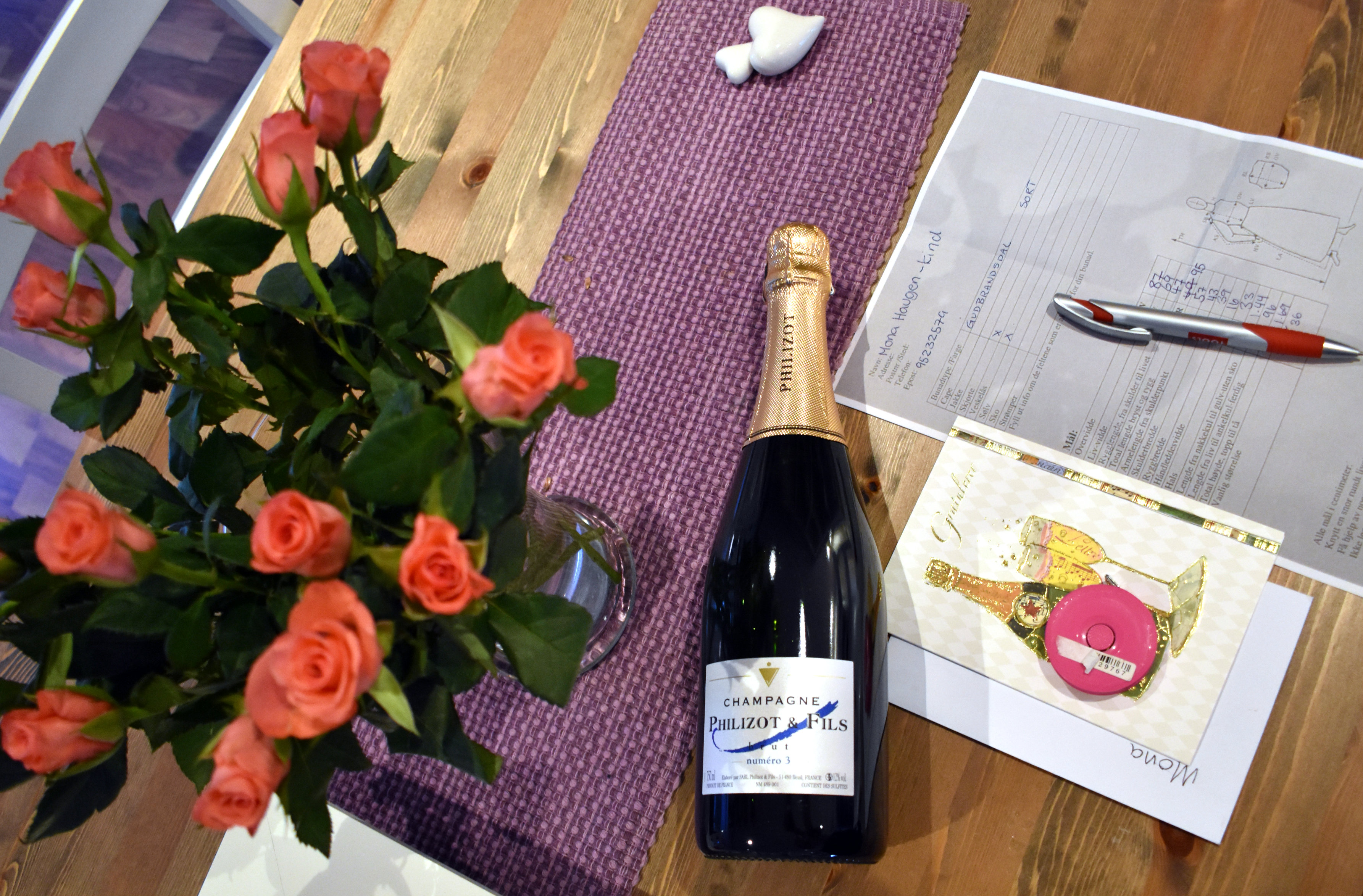 Jeg fikk flotte rosa roser, en utrolig prisverd champagne dere kan lese om her, og ikke minst: bunad!! Min kjære mann har gått sammen med familien og spleist på en Gudbrandsdal festdrakt til meg, noe jeg har ønsket meg i maange år! Og for å få den klar til mai så måtte jeg få gaven tidlig, for syersken måtte ha mål for å sy den såklart. Gleder meg til å ta masse bilder med bunad og champagne på 17. mai!