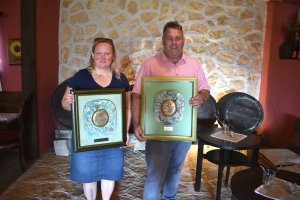 Gjestfrie smaker de gjerne vinen med deg, samtidig som de serverer lokal geitost i olivenolje, oliven og godt brød. De skryter ikke av det, men det er umulig å ikke legge merke til prisene de har fått, blant annet 92 poeng for sin tørre versjon av vinen, hvor plakettene henger i det rosamalte smakerommet.