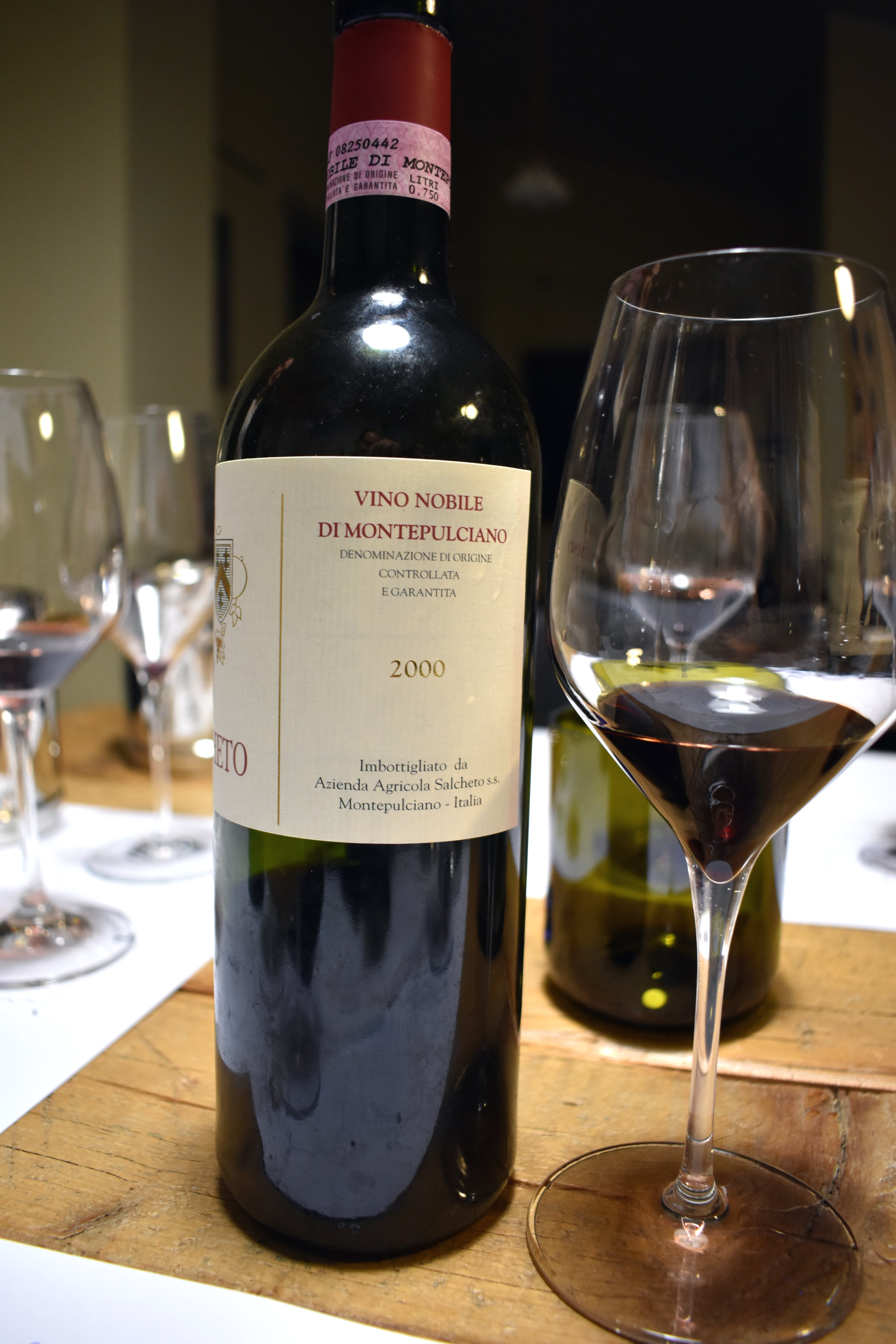Salcheto Vino Nobile di Montepulciano 2000 kom fra et vanlig år værmessig og viser i dag et flott utviklet vin med teblader, krydder og tørket frukt. En flott vin.