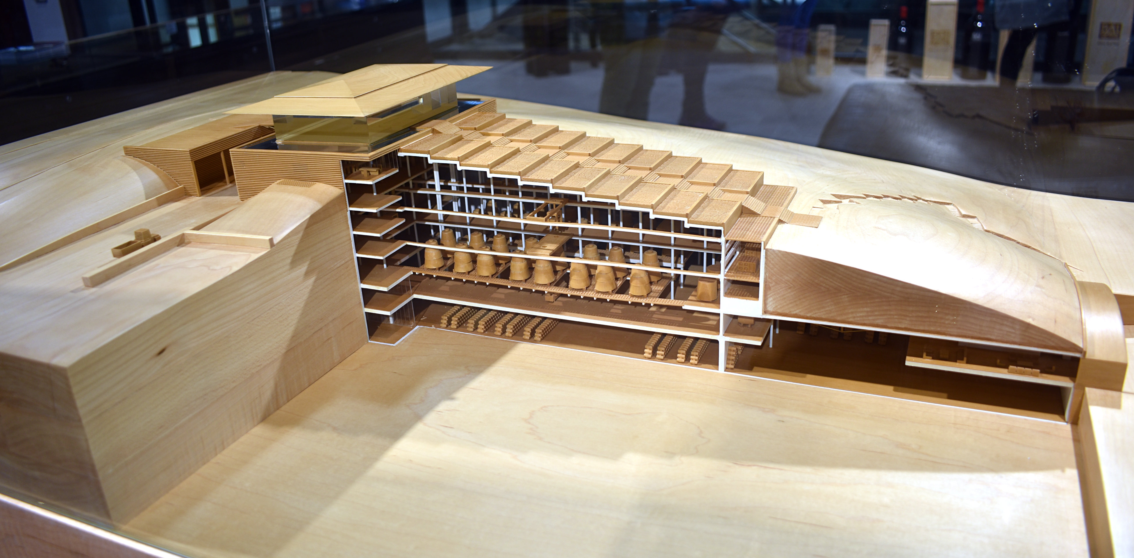 Hele den 30 meter lange veien ned til hjertet av vinhuset blir druer, most og vin flyttet naturlig. Selv om det går heis fra toppen og ned, er det morsomt å rusle sikk-sakk hele veien ned å se alle produksjonsstasjonene gjennom 7 etasjer.