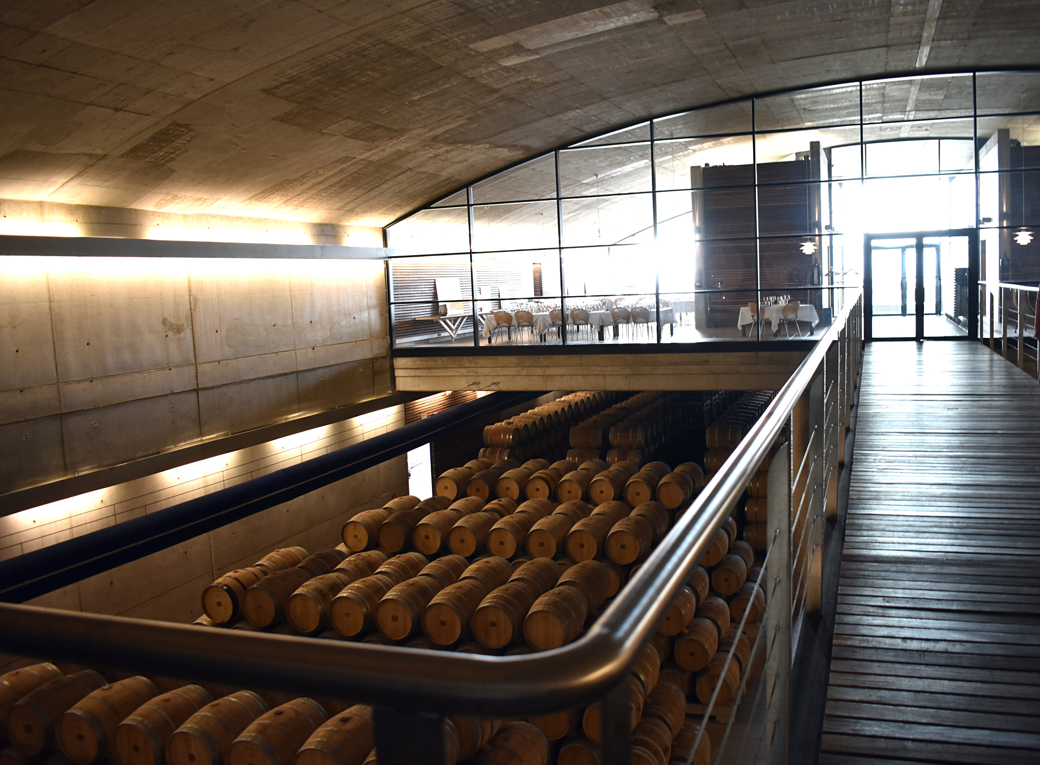 Det er arkitekten Iñaki Aspiazu som har designet og bygd dette spesielle vinhuset, og hvorfor det er bygd slik det er, det oppdager man når man blir invitert inn og ned i det helligste. Stikkordet er nemlig tyngdekraft.