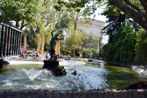 Aperol Spritz foran pavepalasset, her ligger det mange fine kafèer og restauranter. Ta gjerne en liten runde i parken bak slottet også, da smaker lunsjen ekstra godt!
