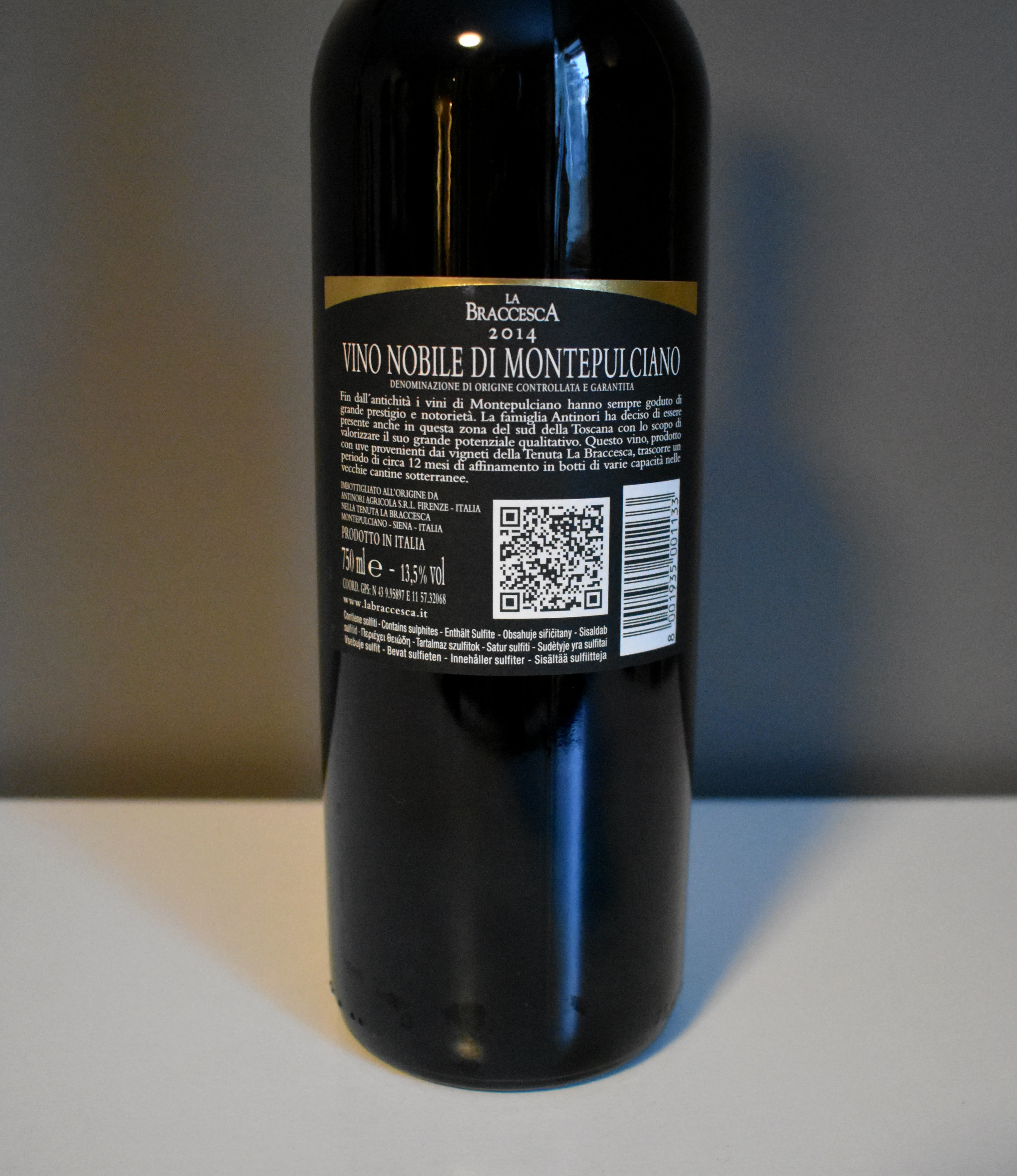 Det er Marchese Antinori som står bak vinen La Braccesca Vino Nobile di Montepulciano 2014 (dette er årgangen som er tilgjengelig nå), men vinhuset reklamerer ikke stort med det kjente navnet sitt på vinen. Familien som begynte å produsere vin allerede i 1385, lager vin som skal bedømmes som det den er, ikke «enda en vin» fra Antinori.