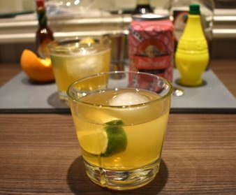 Du fyller et glass med isbiter / en stor iskule, heller over 4 cl mørk rom, 1 cl limejuice og topper med ingefærøl. Enkelt og godt.