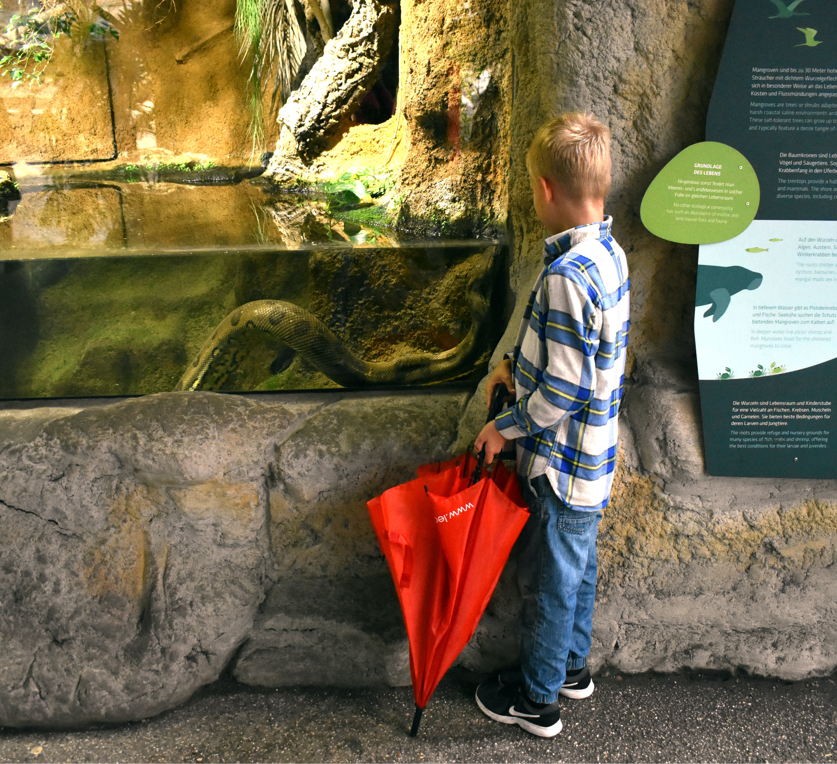 Jeg syns man kommer veldig tett på dyrene, uten at det virker påtrengende for de. Det er god informasjon på både tysk og engelsk og det er lett å finne frem!