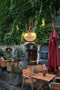 Restauranten ligger midt i sentrum (Platzl) i byens eldste mølle! De har tatt vare på det flotte eksteriøret og all renovasjon av interiøret er gjort for hånd. Restauranten ligger i en kjeller og stemningen er koselig og romantisk.