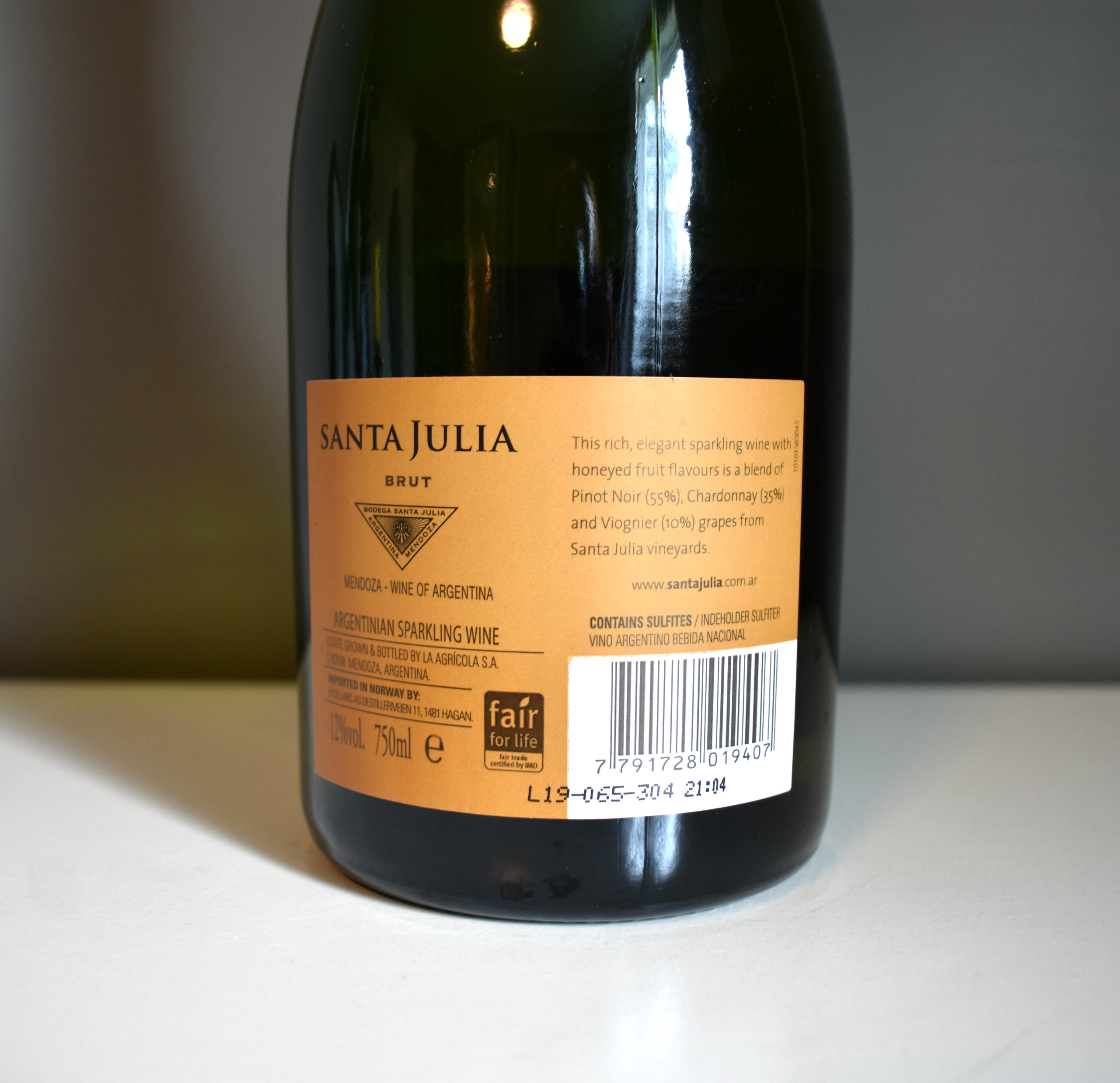 Santa Julia Brut sto å så fristende ut i kaldskapet på mitt lokale vinmonopol en dag jeg var innom, og siden jeg både fikk litt lyst på bobler den lørdags formiddagen og lommeboken tillot den sympatiske prisen plukket jeg den med meg!