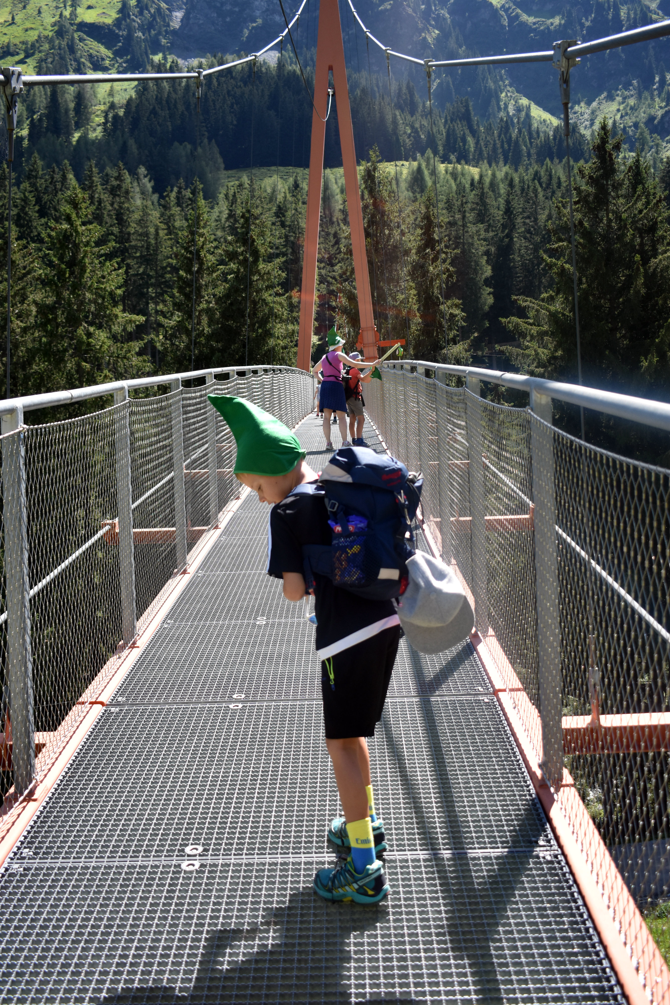 De har også en egen trampolinepark, restaurant, en lekepark i tre, Europas høyeste zipline park, den kjente Golden Gate brua og ikke minst den spennende Baumzipfelweg-stien i skogen som vi sikter oss inn på.