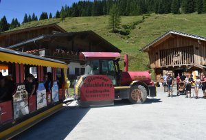 Her serveres tradisjonell østerisk mat med flott utsikt over området, folk traver forbi med staver og sekker, to griser (Schnitzel Fritz og Kotlett Emma) ligger å sover like ved og en geit er opptatt av å tigge nistemat av forbipasserende.