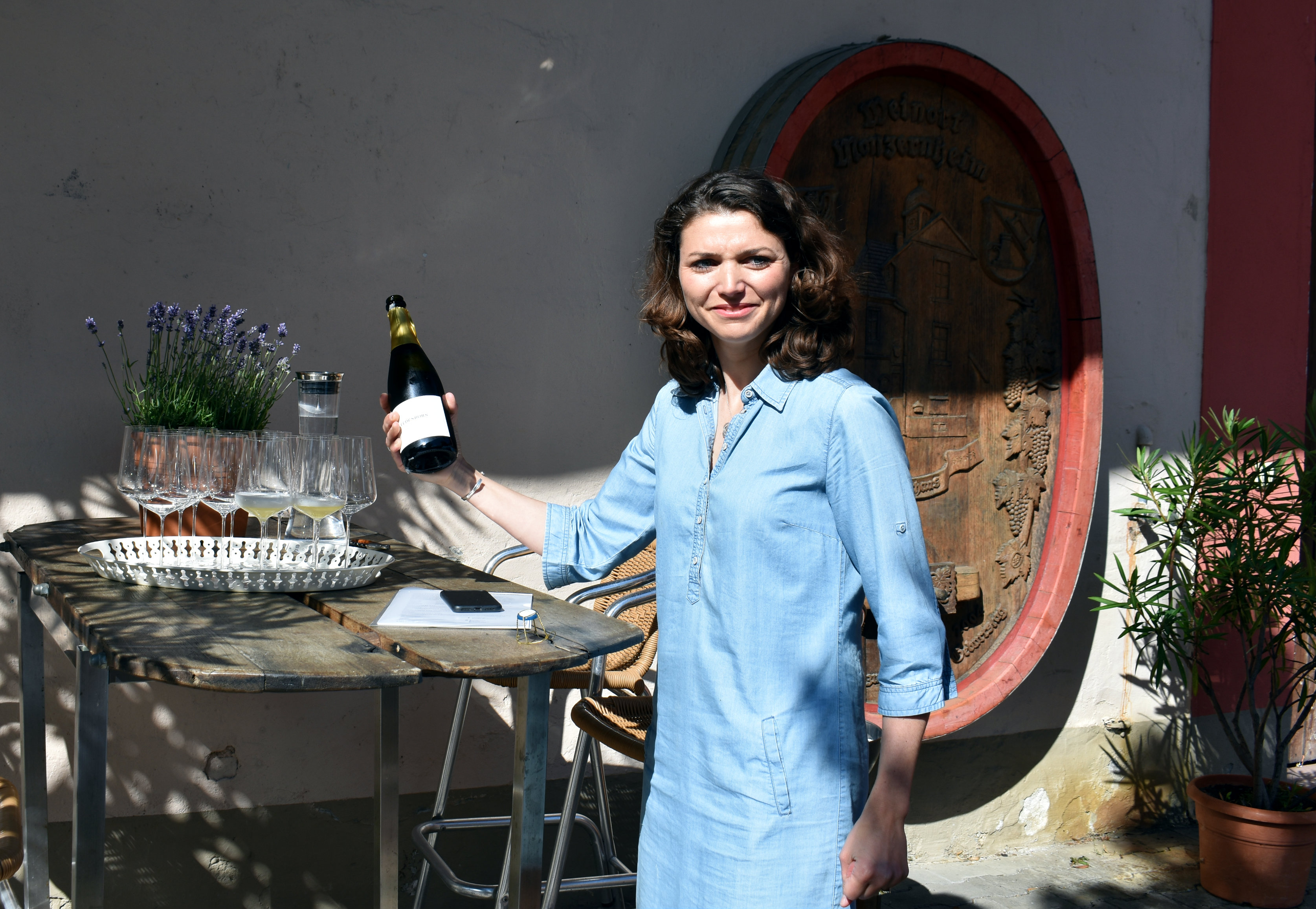 «Poff» sier det høylytt av en flaske musserende vin i det jeg ankommer gårdsplassen til Weingut Weedenborn i Rheinhessen, Tyskland. Gesine Roll som er eier og vinmaker på gården ønsker velkommen og heller i et glass sekt en varm junidag i 2019.