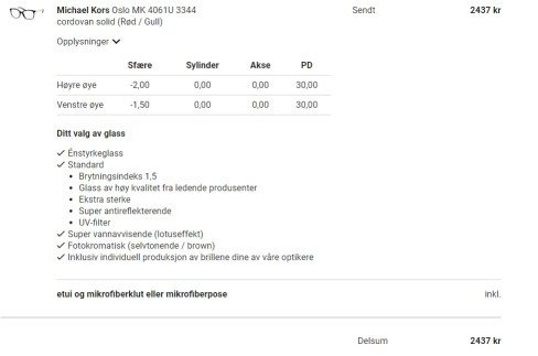 Brillene jeg kjøpte for en liten tid tilbake over kostet meg så vidt over 1000 kroner; Michael Kors MK 30351014 light gold.