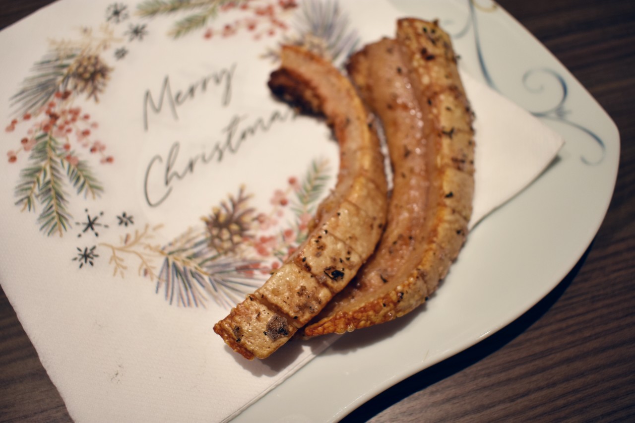 Møt hjemmelagd svinecrisp! Fantastisk sprø svor, og vil du ha med litt kjøtt under er ikke det dumt heller. En utrolig god snacks!