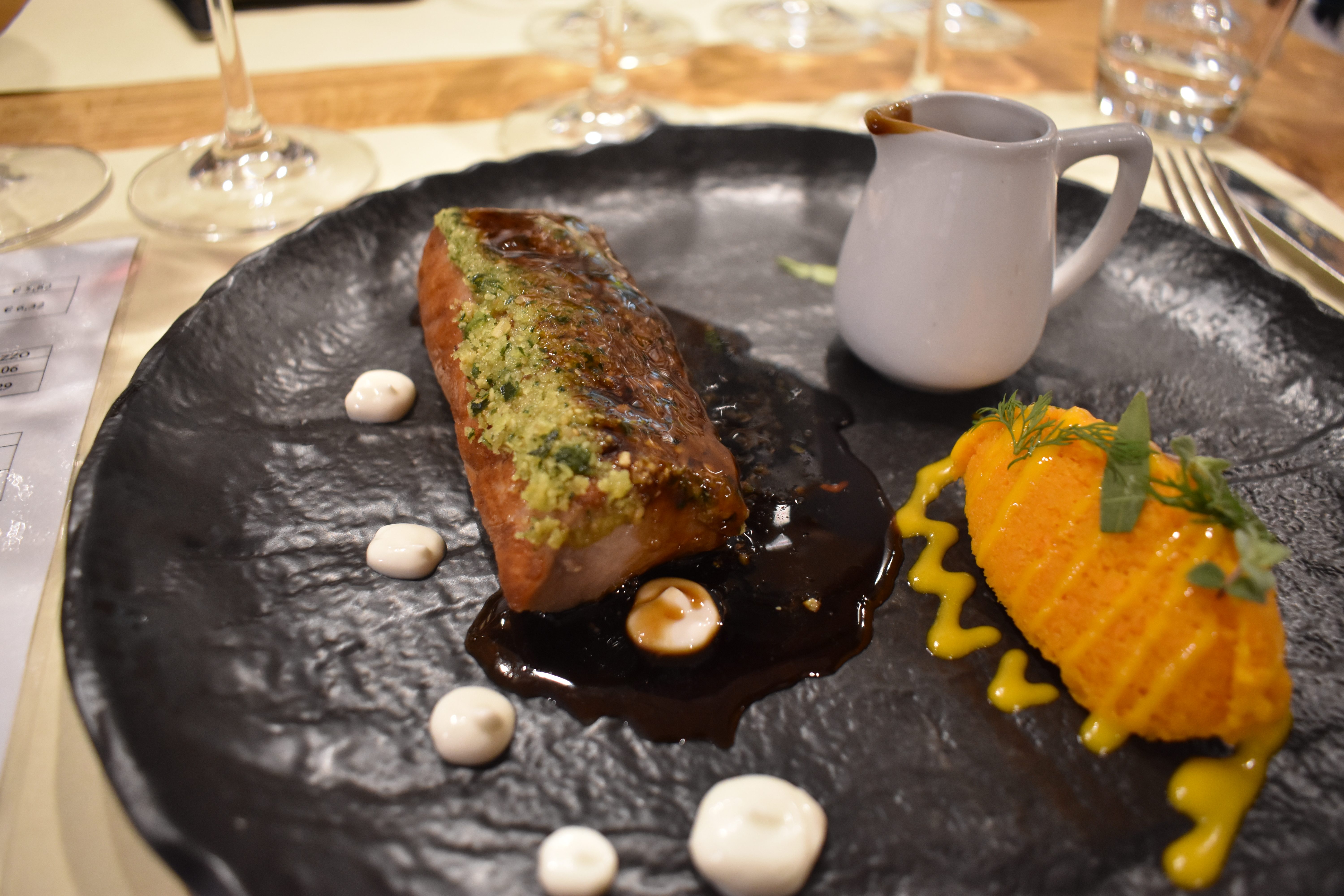 Her serveres lokal deilig mat sammen med både husets viner og andre, de har i tillegg en vinbutikk. Da jeg var innom der stoppet det innom både lunsjgjester på 3-retters, folk som skulle handle vin og folk som bare skulle ha en kjapp matbit på veien.