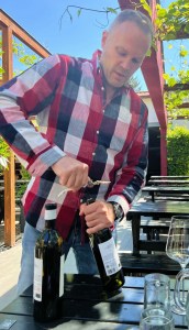 Rainer i den flotte Heurigen deres. Vi smaker deres Bisamberg Wiener Gemischter Satz 2021, en frisk og fruktig vin med en god balanse, lang og strukturert utgang. Rieslingen Ried Wiesthalen 2020 er også en meget fin vin, kompleks og innbydende på aroma, syrefrisk, lett krydret og lang utgang. Kastanienwald Pinot Noir 2018 er noe av det beste jeg har smakt av denne druetypen i Østerrike, en konsentrert, krydret og mineralsk vin, med en kompleks og lang utgang. Meget Bra! Kun 800 flasker.