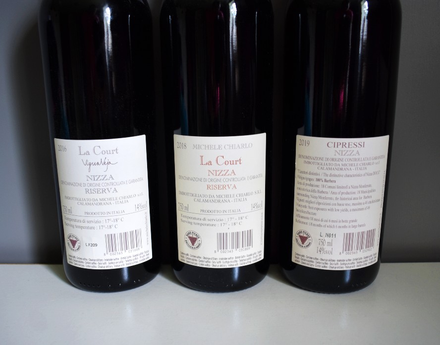 Michele Chiarlo Nizza DOCG Riserva La Court Vigna Veja 2016 blir produsert kun i gode år i begrenset antall. Logoen er designet av Ugo Nespolo, en kjent italiensk kunster innen pop art. Druen er Barbera som blir høstet fra en 1ha stor enkeltvinmark på toppen av La Court på 250 meters høyde over havet. Kompleks og fruktig nese, mørke bær og frukter, krydder, hint av mokka og jordlige toner. Den er fruktig på smak, kompleks, god syre og struktur i en lang ettersmak. Denne tåler mange år i kjelleren fortsatt, men drikkes godt nå. Meget fin Nizza.
