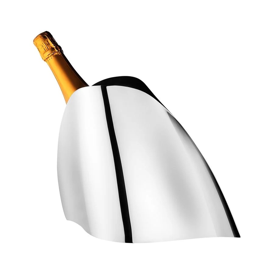 Champagnekjøler fra Georg Jensen. Champagnekjøler i blank rustfritt stål i serien Indulgence. Kjøleren er utformet med en skrå vinkel slik at flasken lett kan tas ut og legges tilbake. Indulgence Champagnekjøleren er en unik og elegant kjøler for alle anledninger.