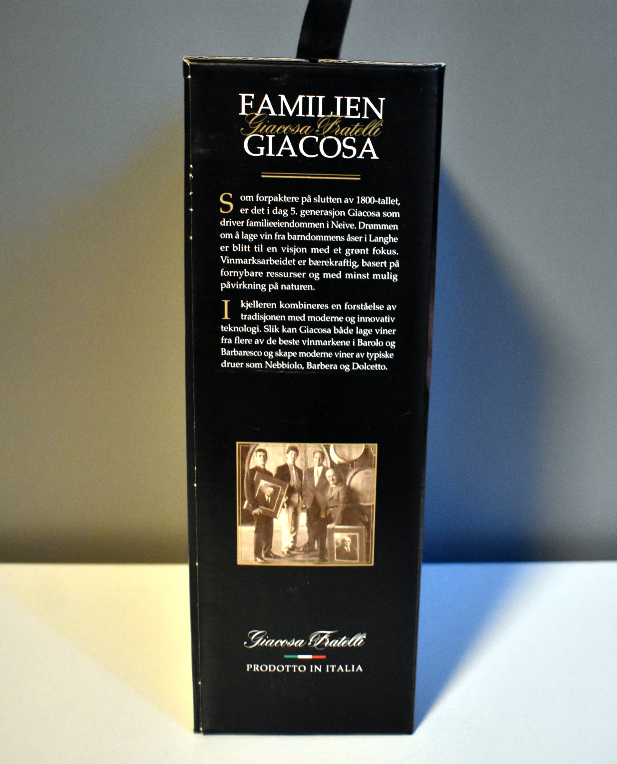 Giacosa Fratelli er nok et kjent navn for mange, både navnet og logoen har vært sett i Norge i en årrekke. På 1990-tallet begynte de å kjøpe opp parseller i berømte Barolo vinmarker som Bussia og Mandorloog senere i Basarin vinmarken i Neive. I tillegg kjøpte de noen hektar plantet med Dolcetto og Barbera i Madonna Como.