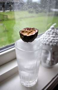 Hell alt over i et Highballglass med is og pynt med pasjonsfrukt. For en friskere drink tilsett litt limejuice eller skiver.