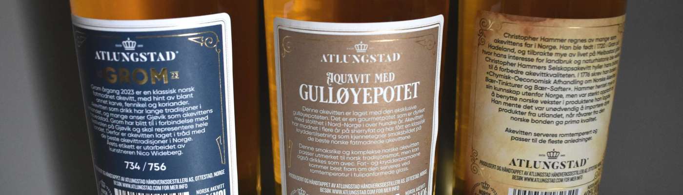 Atlungstad Grom 2023 er en av de edleste akevittene Atlungstad lager. Resepten er basert på alle de viktigste akevittstilene som er kjernen i den norske akevittradisjonen. I tillegg inneholder den en andel fra fatet som er merket «Riksantikvaren». Det var en gest til Jørn Holme som var den som betydde aller mest for fredningen av Atlungstad. I tillegg er det også med noe mer Slottsakevitt. Det ble tappet 756 nummererte flasker i forbindelse med årets akevittfestival på Gjøvik. Årets etikett er utarbeidet av Nico Wideberg. Akevitt har lange tradisjoner i Innlandet og Gjøvik er den norske akevittens vugge og hovedstad. Nesten all potetsprit i alle typer norsk akevitt er innom rektifiseringsanlegget Hoff på Gjøvik for destillering. Det var derfor ganske naturlig å hedre byens betydning for norsk akevitt med en egen blend fra Atlungstad.